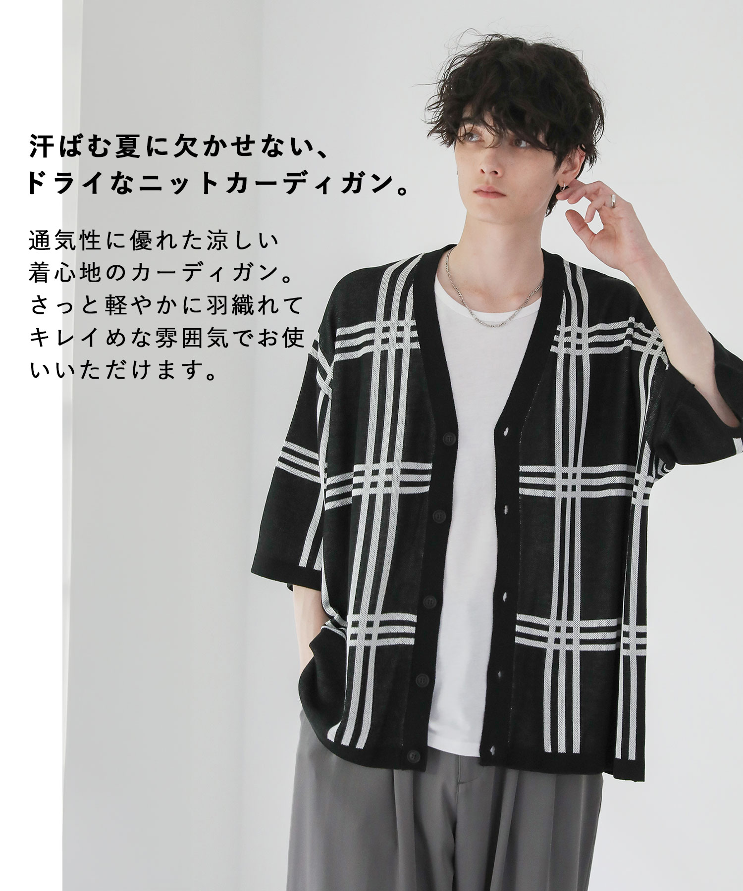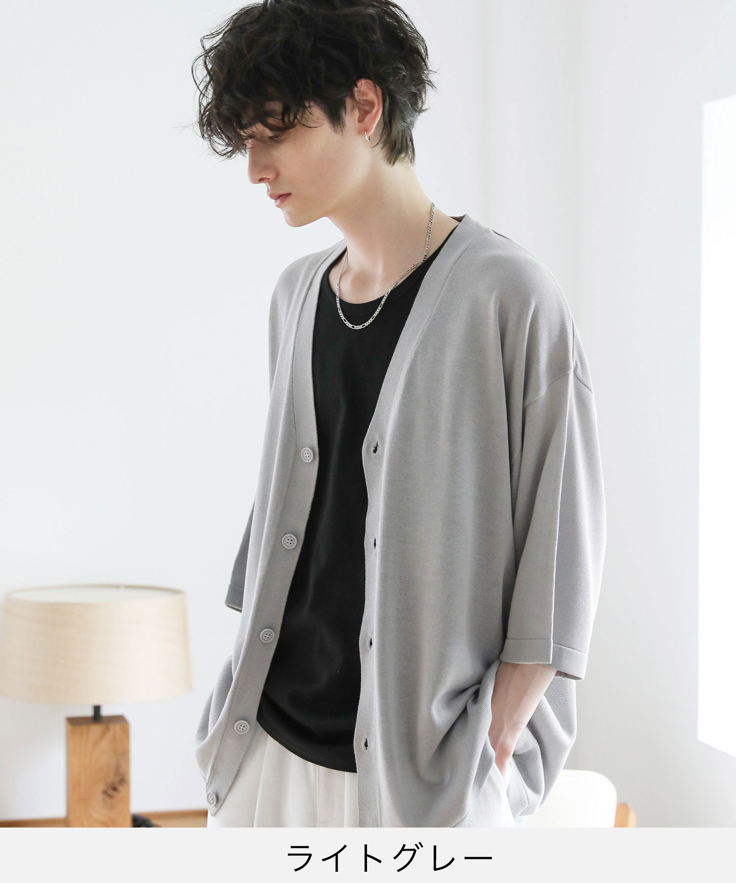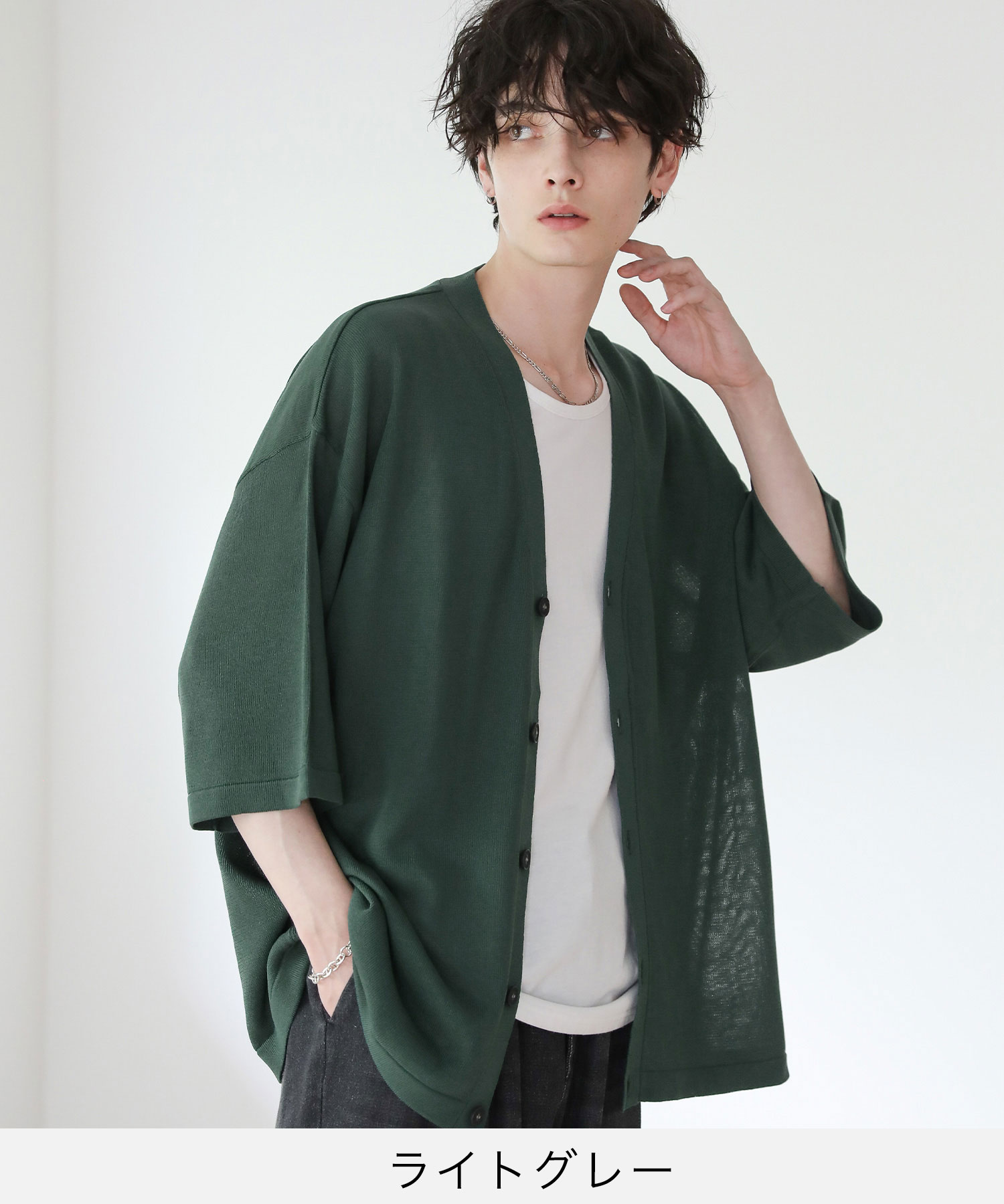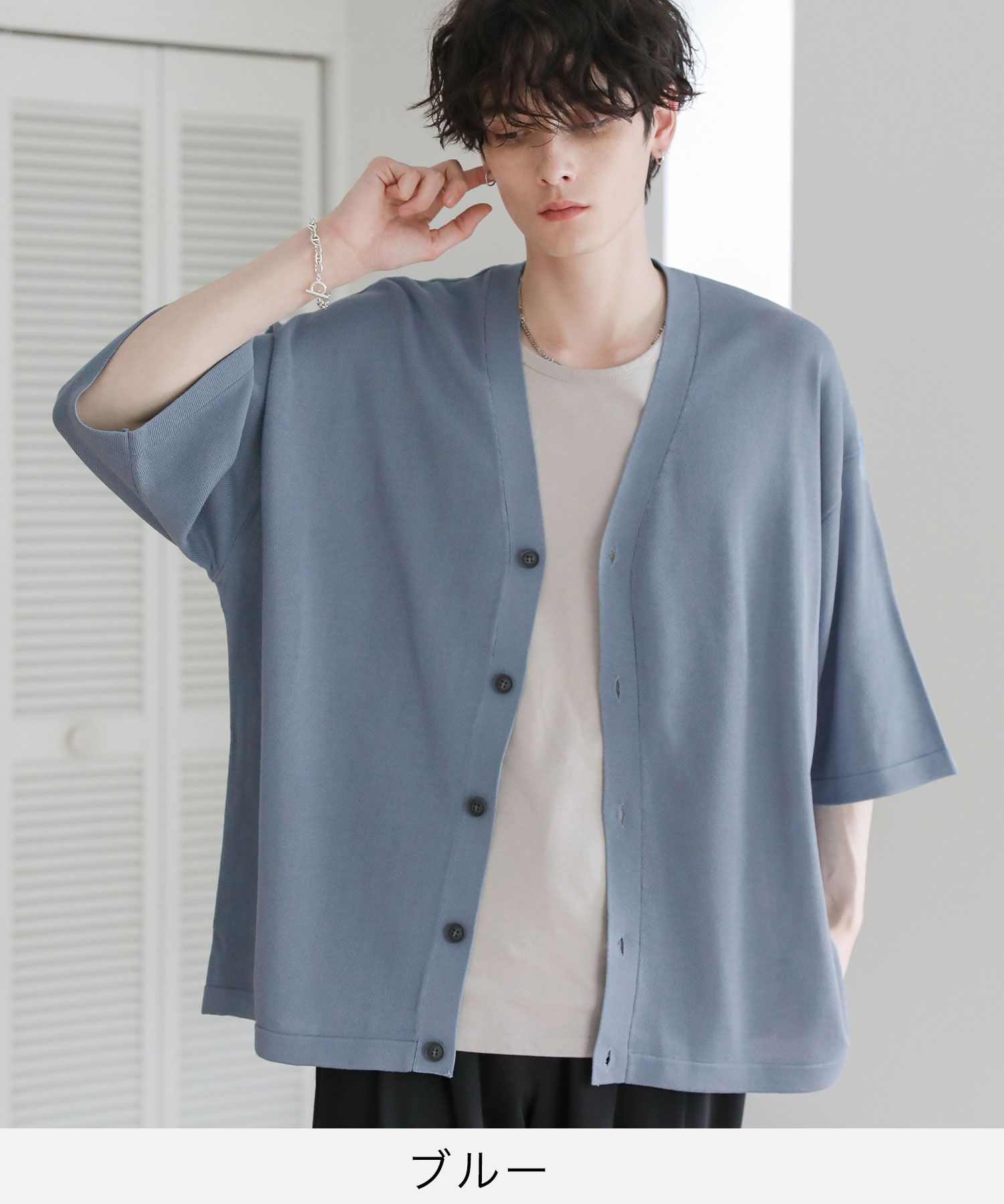 カーディガン メンズ 半袖 サマーニット ルーズ ビッグ ドロップショルダー カーディガン 涼しい 冷房対策 夏服 夏 Vネック