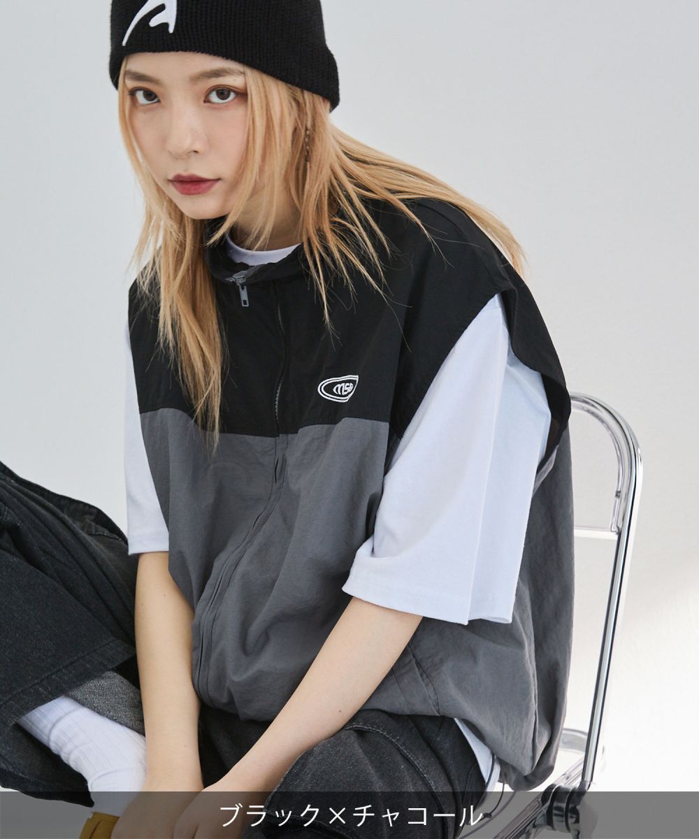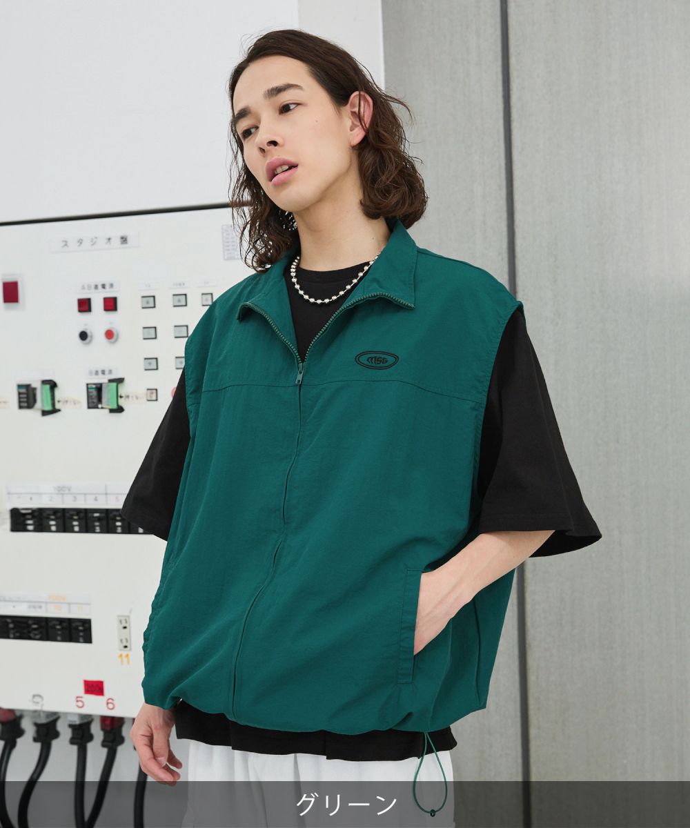 ベスト ナイロンベスト メンズ ユニセックス ファッション バルーンシルエット 配色 ワンポイント 刺繍ロゴ 春 夏