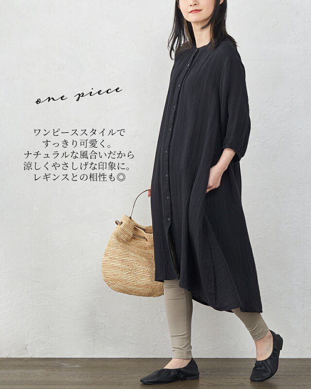【25%OFFクーポン対象】抜群の肌触り オーガニックコットン ダブルガーゼ シャツワンピース ガーゼ レディース Wガーゼ シャツ ワンピース ロングブラウス 秋 夏 綿 綿100 インド綿 きれいめ カジュアル 綿100% ロング コットン