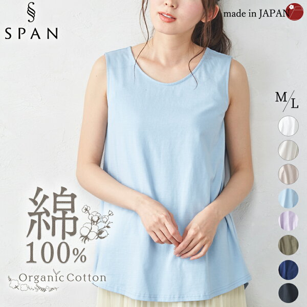 【15%OFFクーポン対象】日本製 肌に優しい オーガニックコットン フレア タンクトップ ロング丈 日本製 レディース キャミソール ブラ紐を隠せるインナー チラ見え防止 ブラ紐隠し 綿 綿100% コットン 黒 白 ホワイト ブラック 30代 40代 50代 5180761
