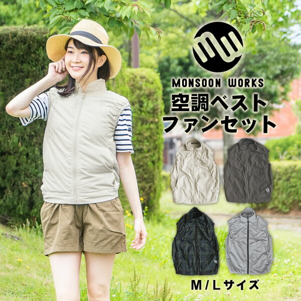 空調ベスト レディース 空調ウェア フルセット 2024 女性 ファン付き バッテリー付き / 空調 ベスト 空調作業着 空調作業服 / ファンバッテリーセット / 涼しい 静か ニューモデル 女性用 ベスト おしゃれ モンスーンワークス