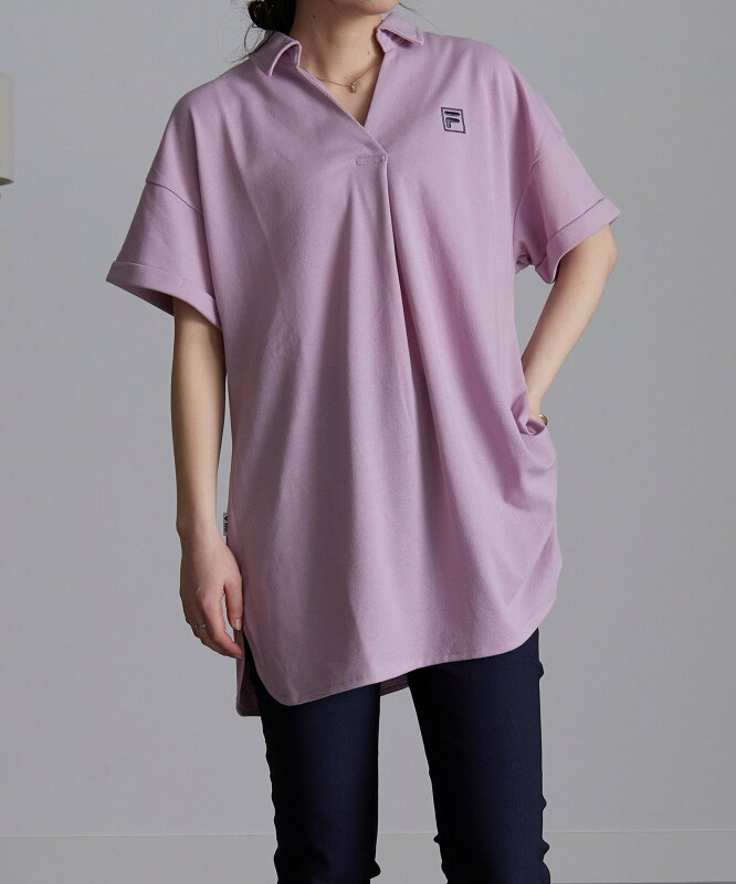 【SALE/18%OFF】Ranan <FILA>鹿の子チュニックポロシャツ ラナン トップス ポロシャツ パープル ブルー ネイビー カーキ ブラック グレー ピンク ホワイト グリーン
