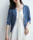 薄めの生地で五分丈くらいで袖もあるのでクーラーなどで寒い時もちょっと羽織っておくのによいです。