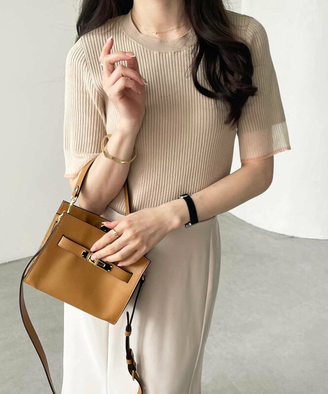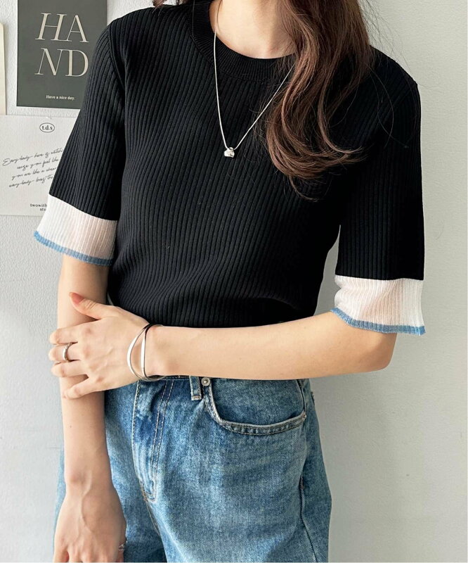 【SALE/35%OFF】GeeRA 袖口シアーリブニット ジーラ トップス ニット ホワイト ブラック ブルー ベージュ パープル オレンジ