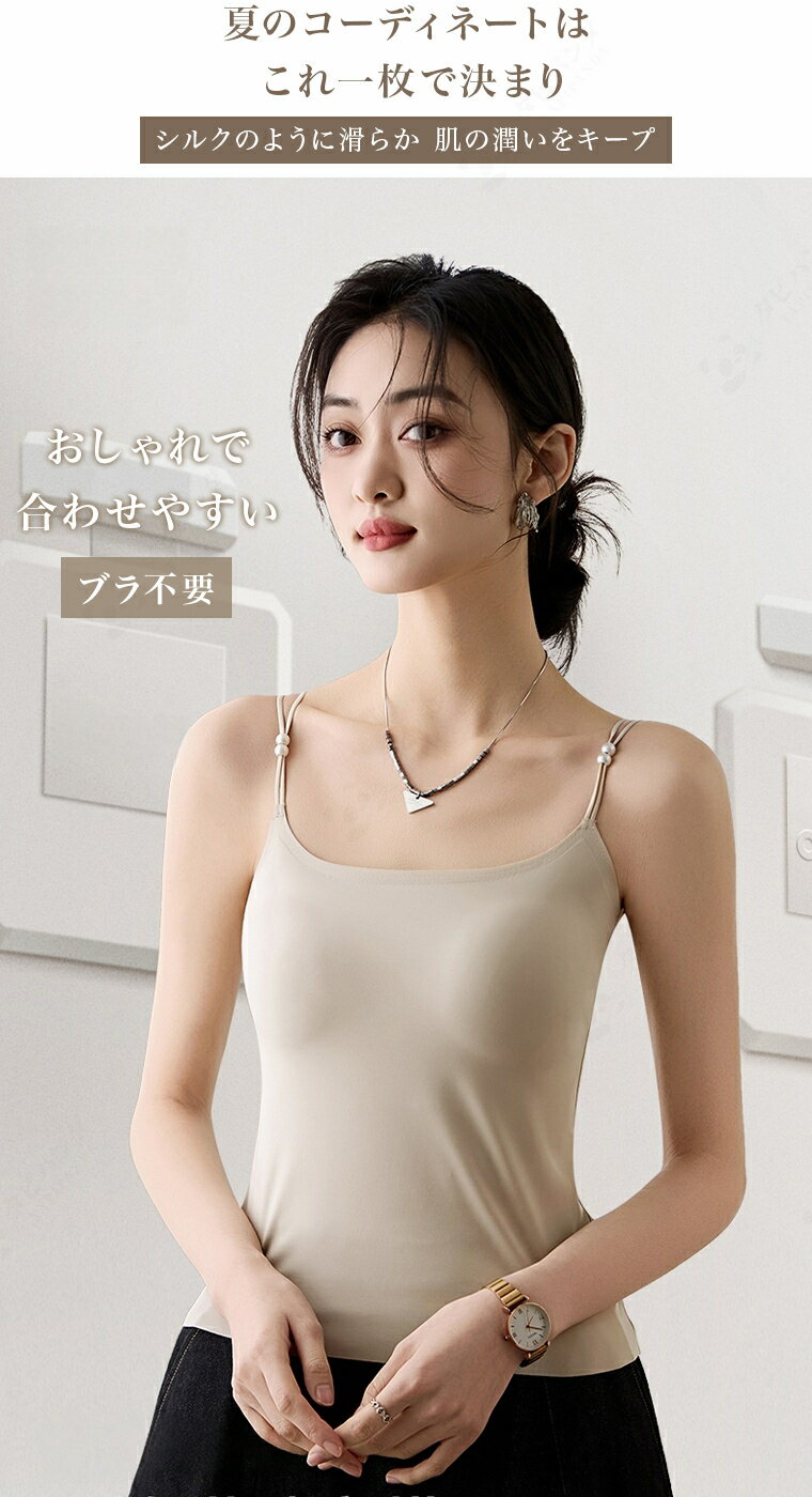 ブラトップ 接触冷感 ‐2℃ カップ付き キャミソール 育乳 リブ 盛れる ブラキャミ 締め付けない カップ付きインナー ノンワイヤー キャミブラ トップス 冷感 インナー バストケア ホールド 春夏 カップ付きキャミソール 通気性 蒸れない パッド付インナー パールストラップ