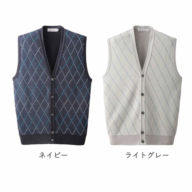 日本製 麻混 前開き ダイヤ柄 ニット ベスト シニアファッション メンズ 60代 60代 70代 80代 90代 高齢者 服 春夏 高齢者 服 おじいちゃん 誕生日 紳士 祖父 男性 老人 ギフト