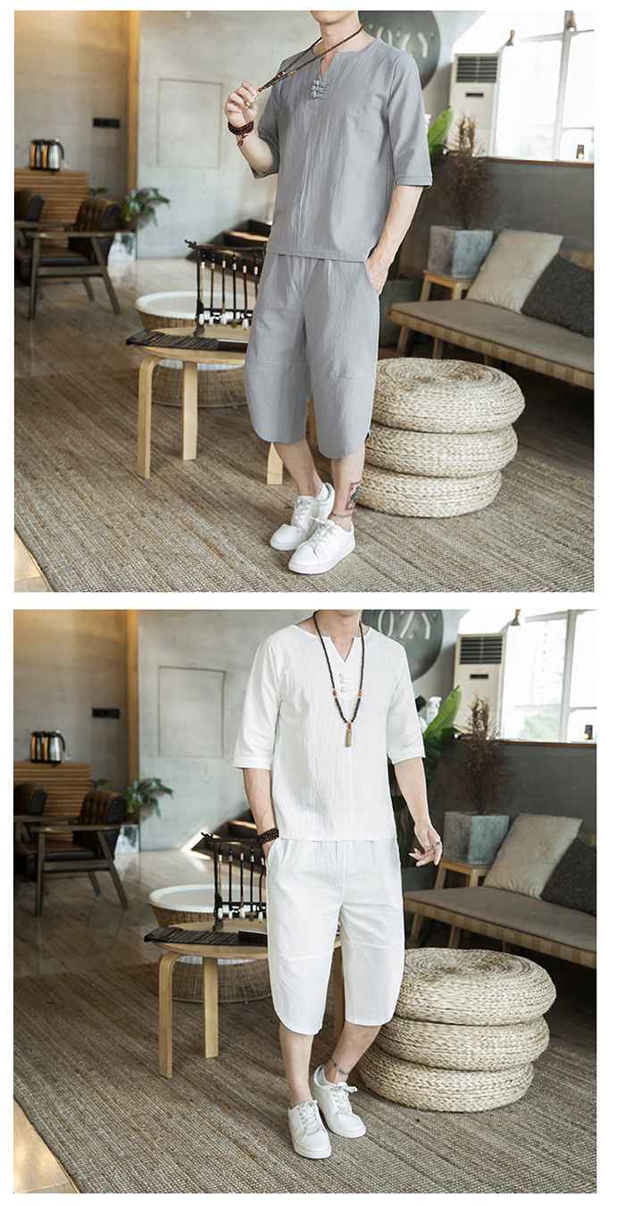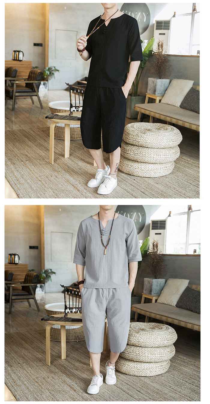 M~3XL 綿麻上下セット セットアップ リネン 亜麻 メンズ 父の日 薄手 人気 快適 ワイドパンツ サルエルパンツ 上下 ルームウェア 半袖 薄手 Tシャツ パンツ おしゃれ ファッション 部屋着 プレゼント ギフト 敬老の日 父の日 TK-S
