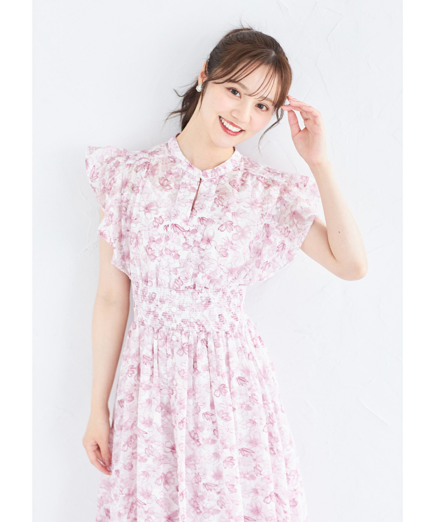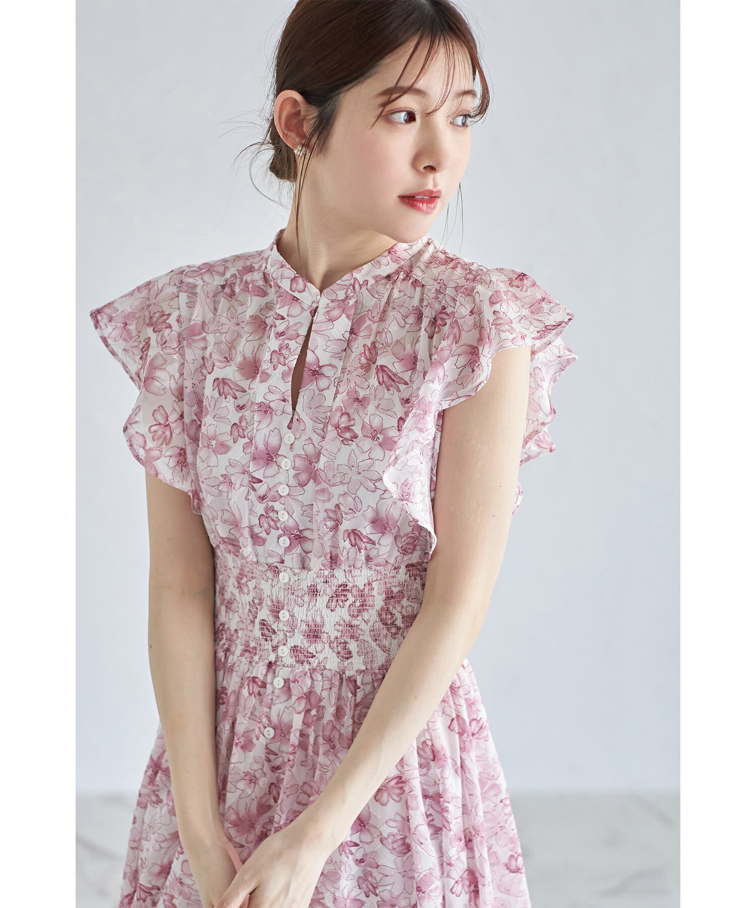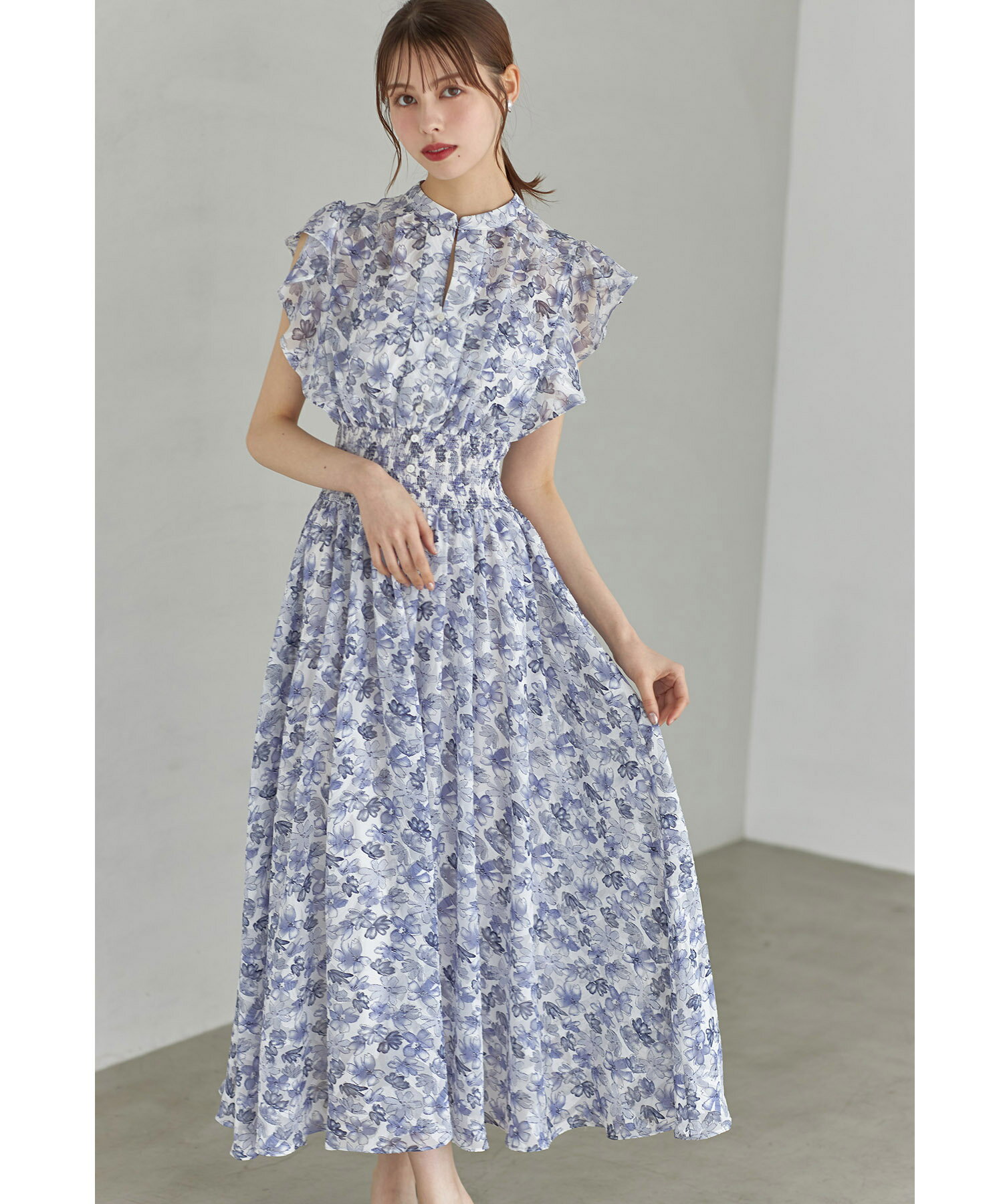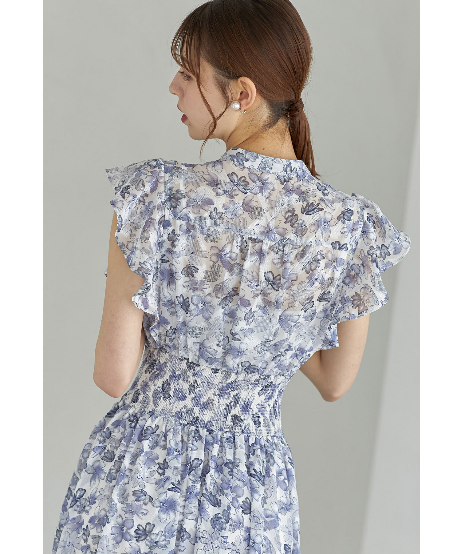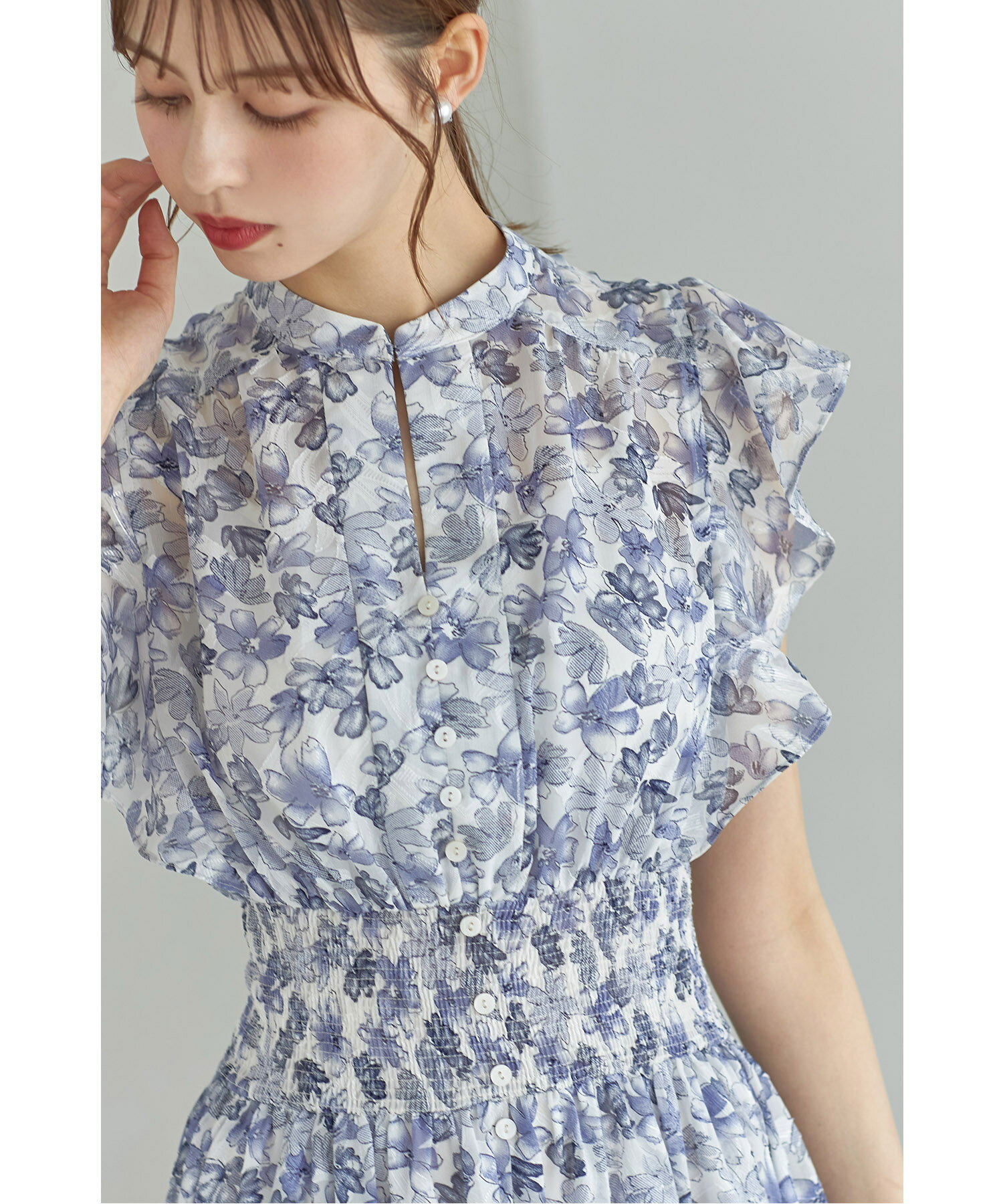ペチコート付きシアージャガード×フラワープリントシャーリングワンピース【lumace ルマース】tocco closet(トッコクローゼット) ※森香澄さんはブルー着用 ブルー ピンク 商品番号:186-184068