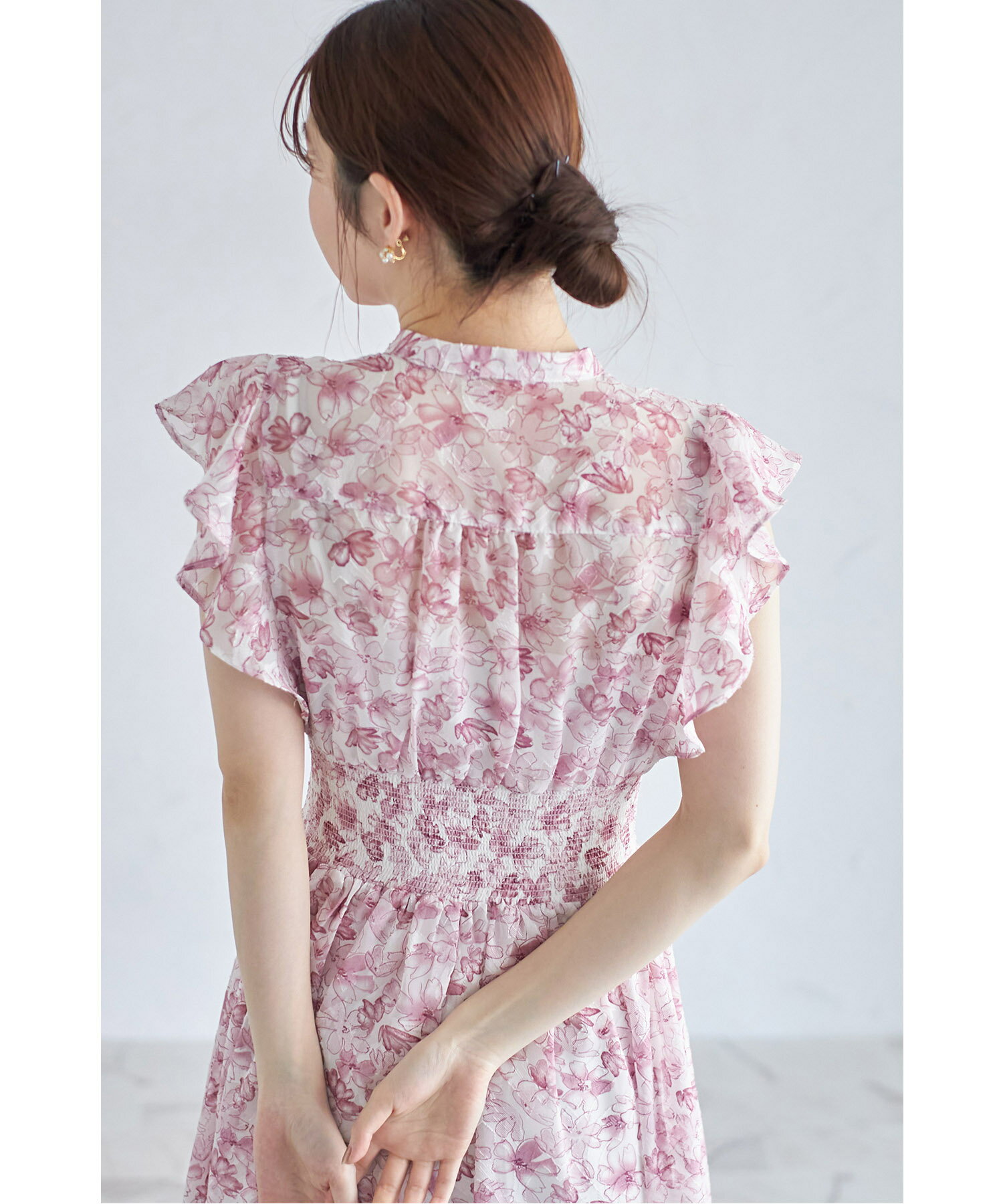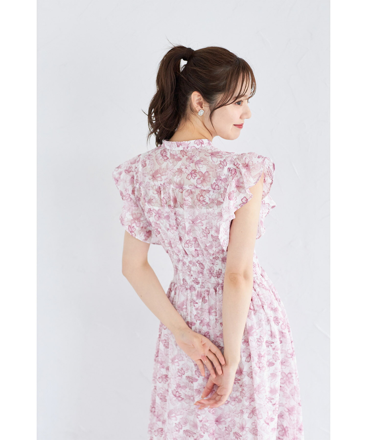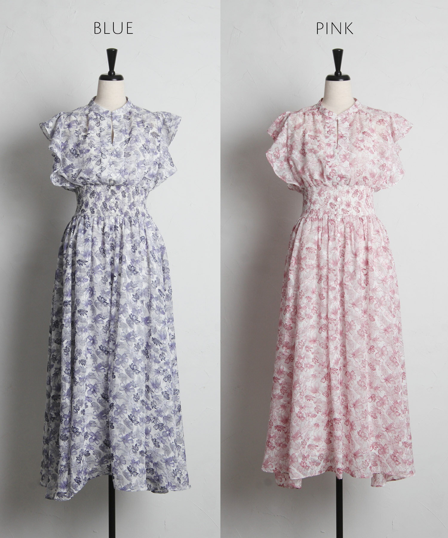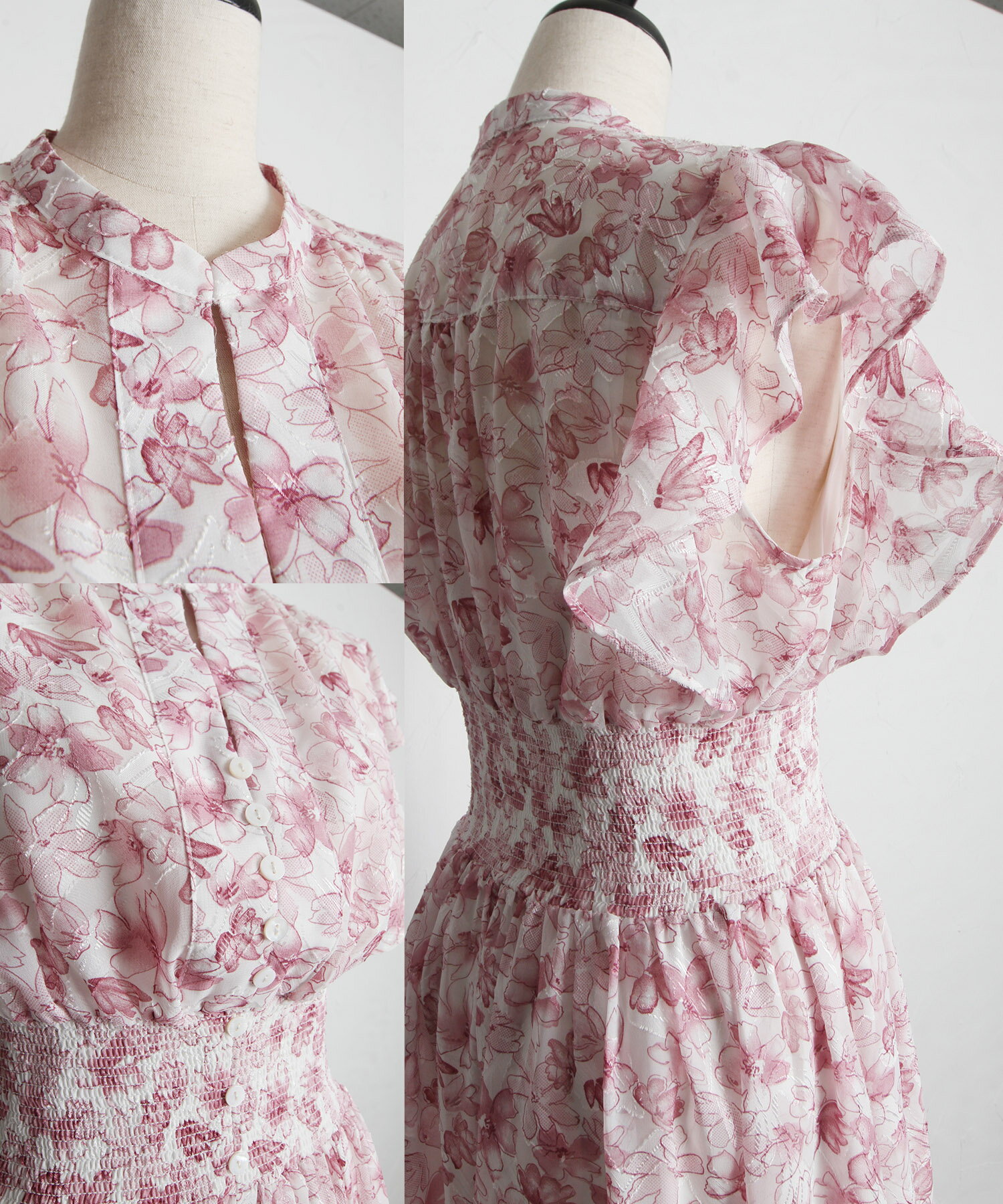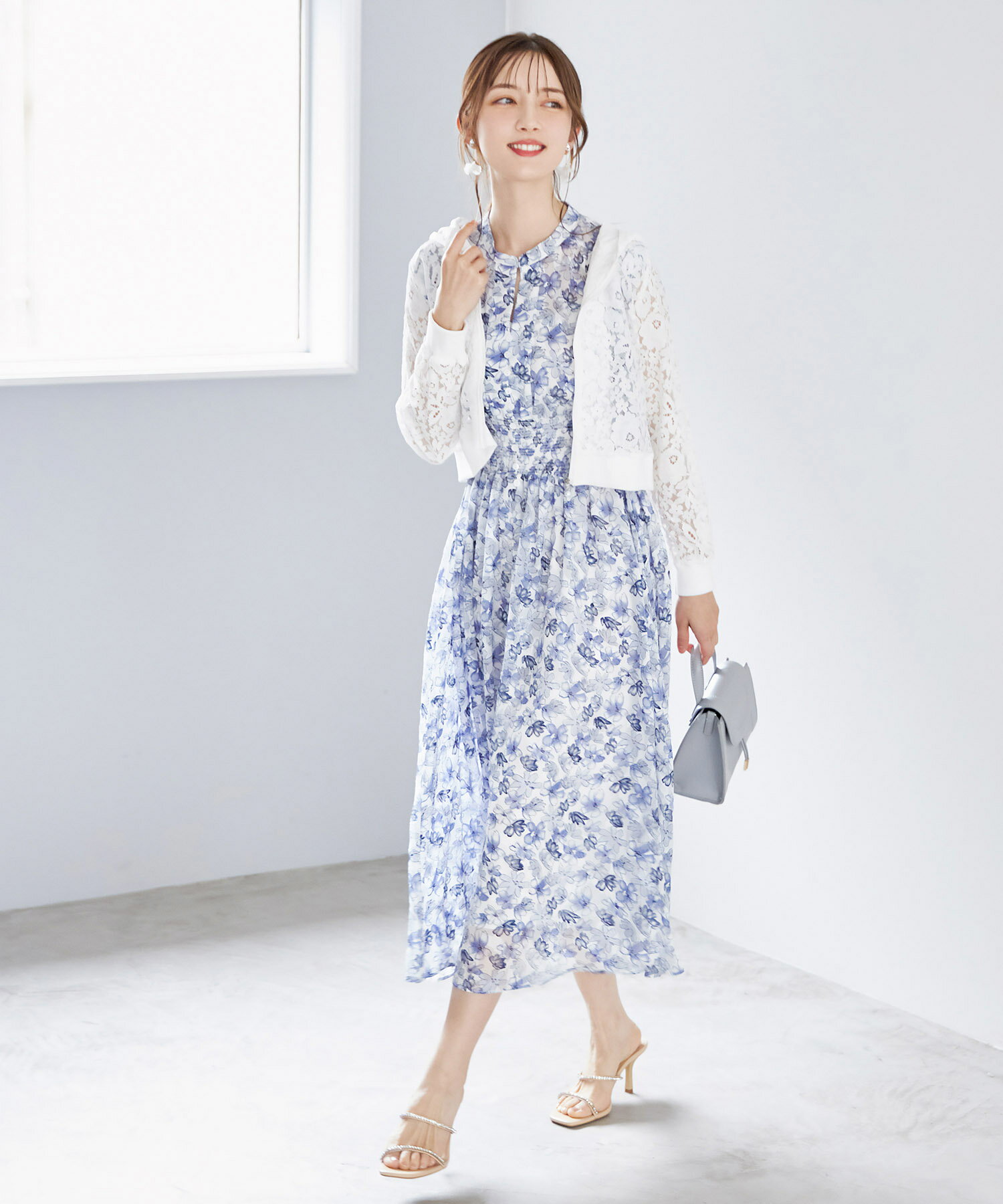ペチコート付きシアージャガード×フラワープリントシャーリングワンピース【lumace ルマース】tocco closet(トッコクローゼット) ※森香澄さんはブルー着用 ブルー ピンク 商品番号:186-184068