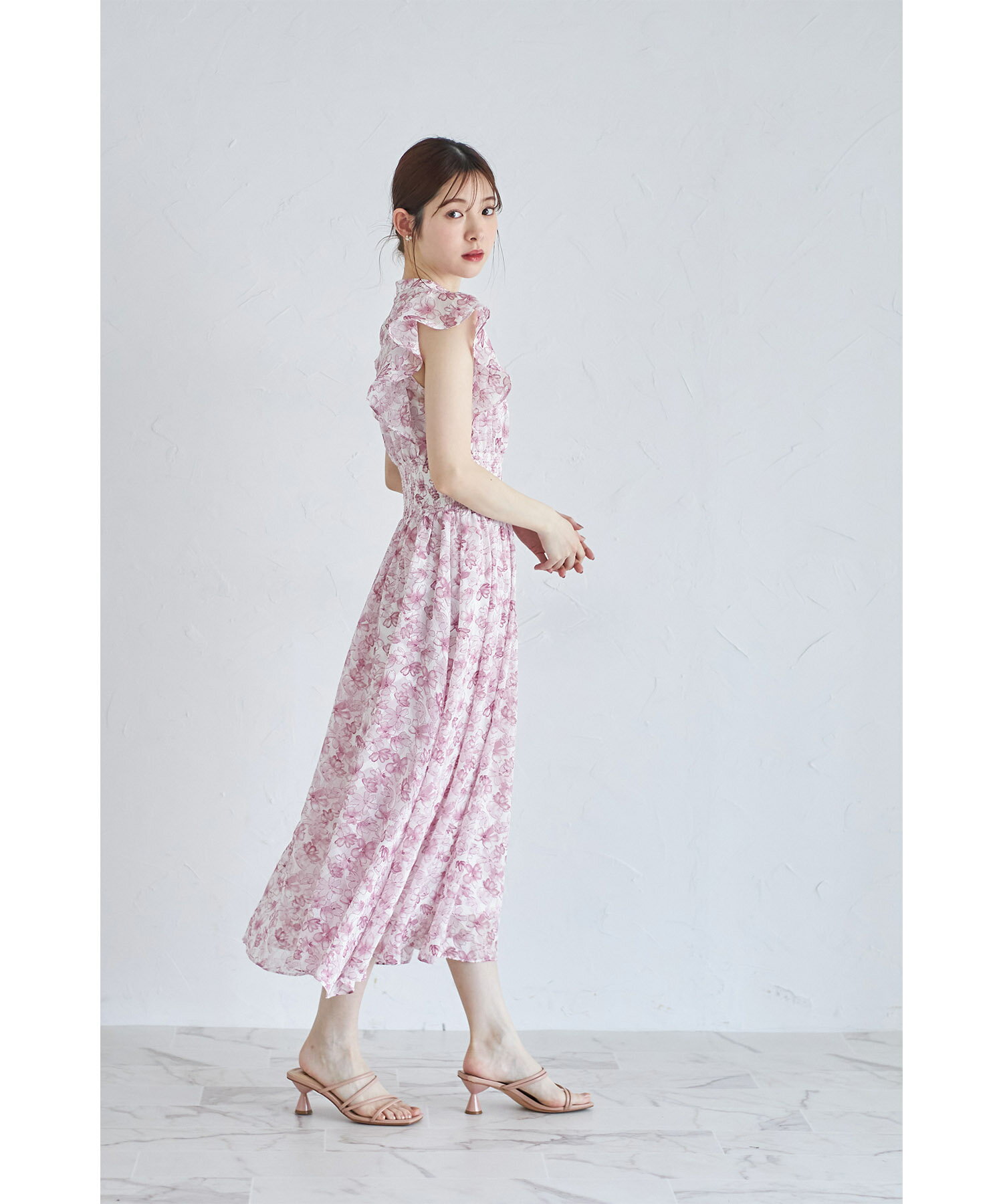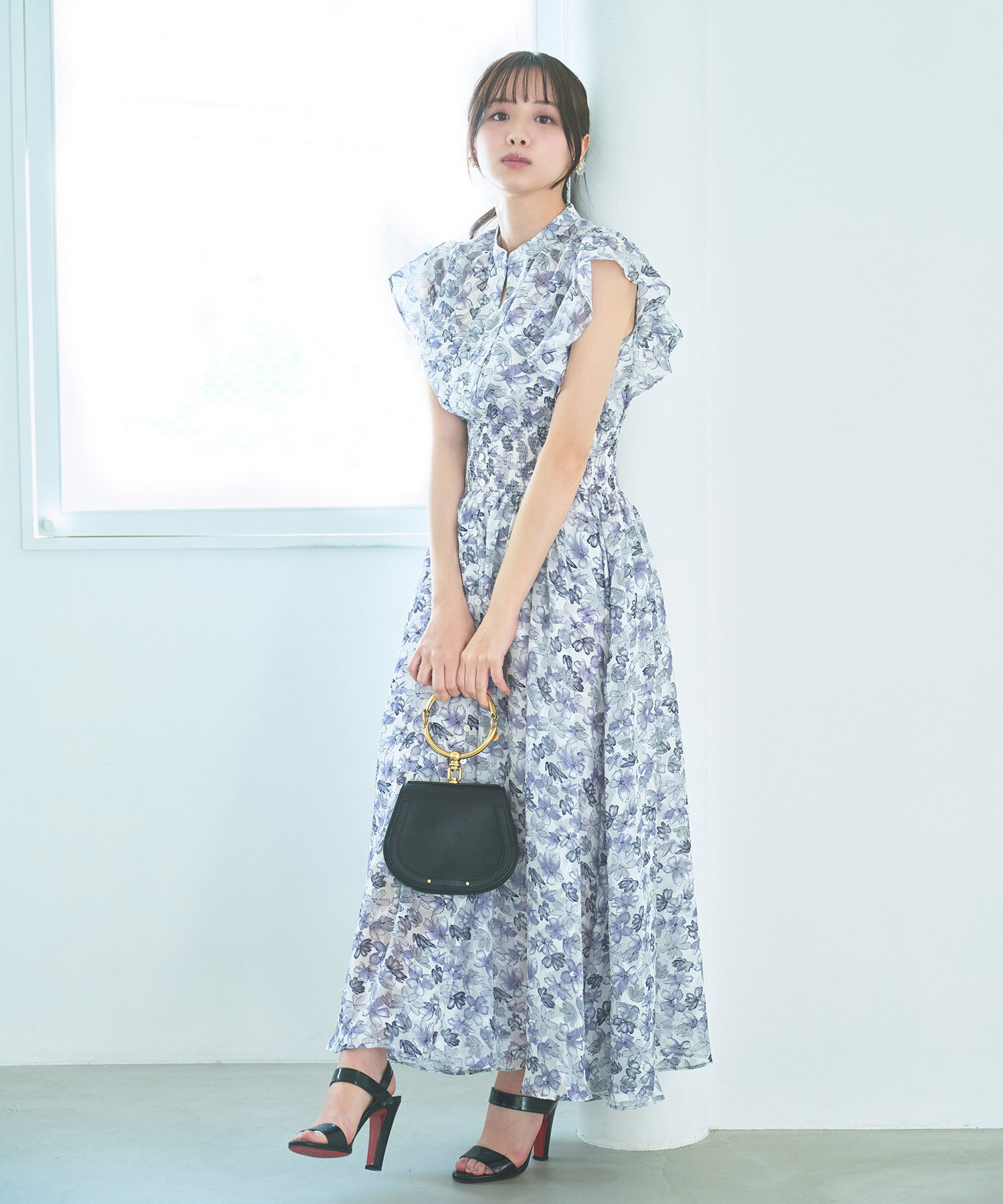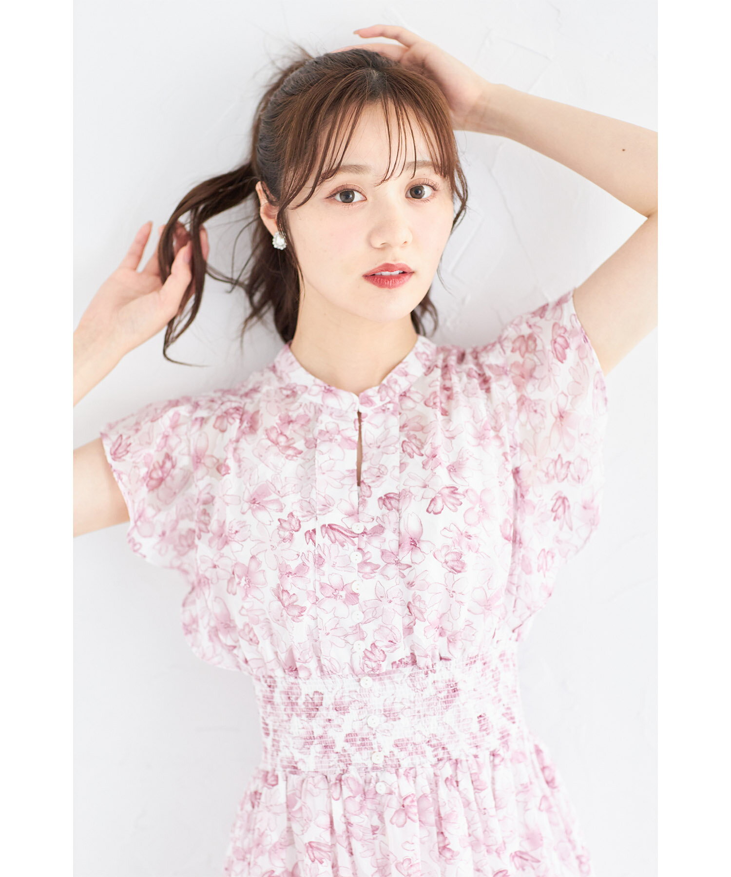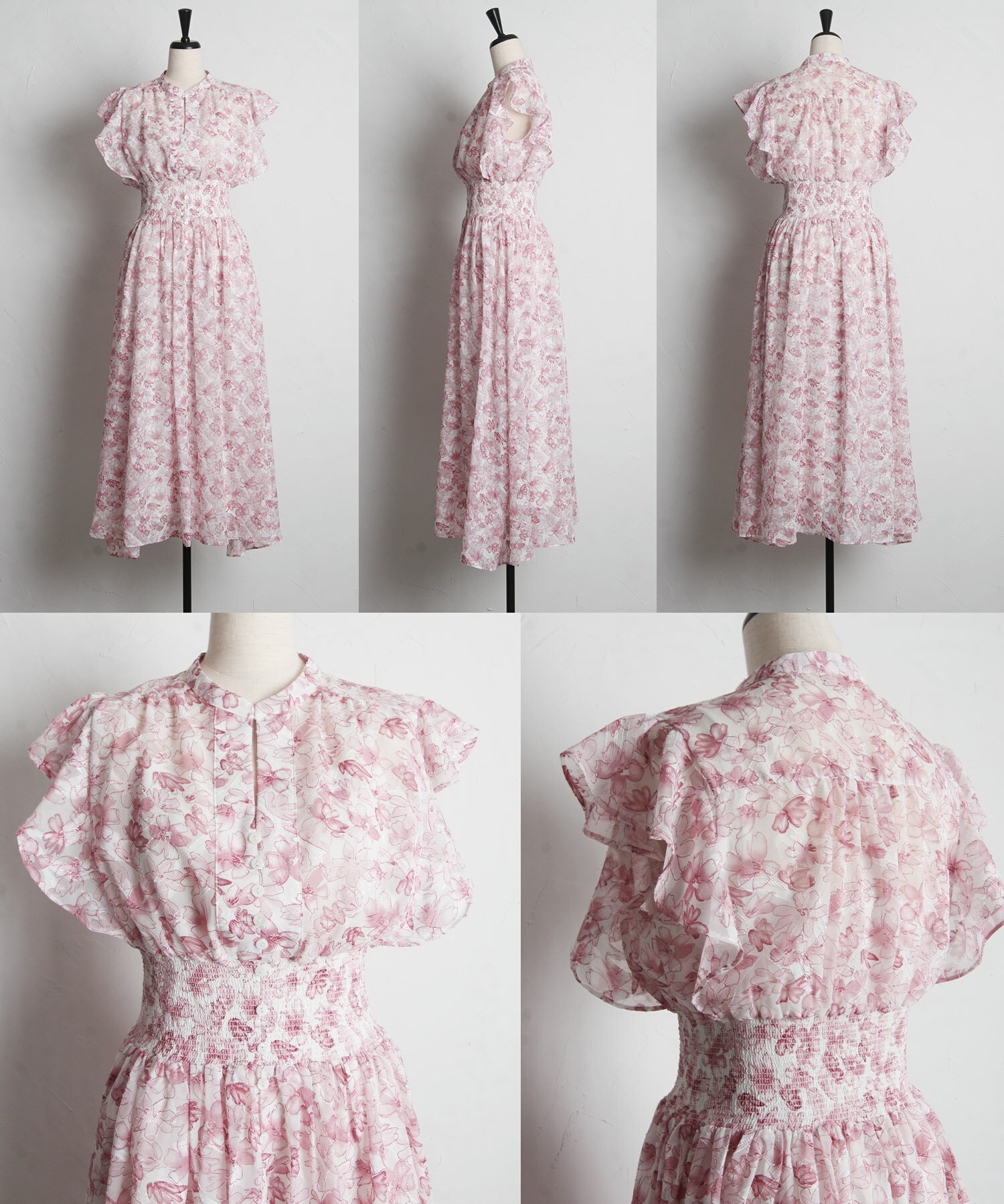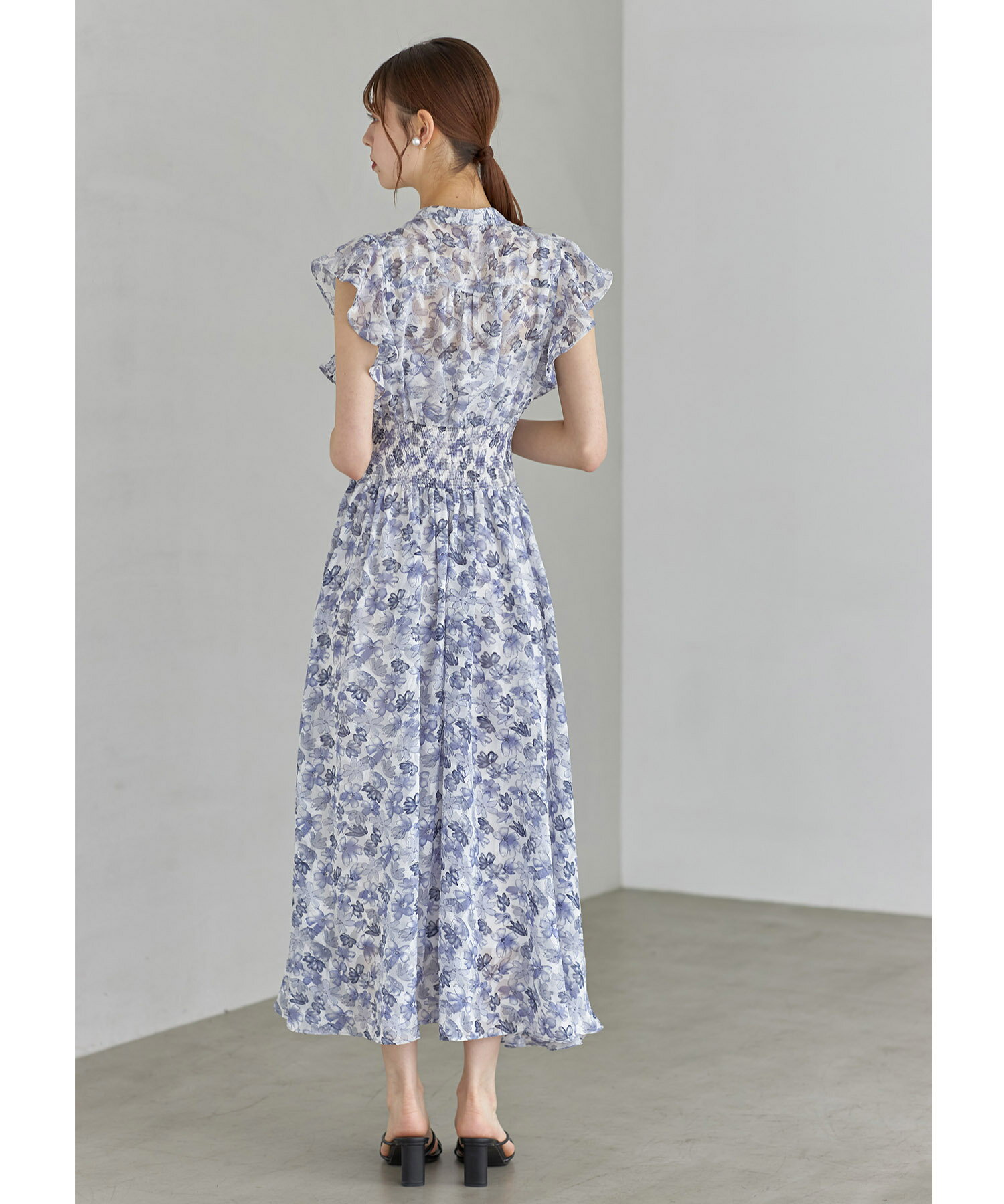ペチコート付きシアージャガード×フラワープリントシャーリングワンピース【lumace ルマース】tocco closet(トッコクローゼット) ※森香澄さんはブルー着用 ブルー ピンク 商品番号:186-184068