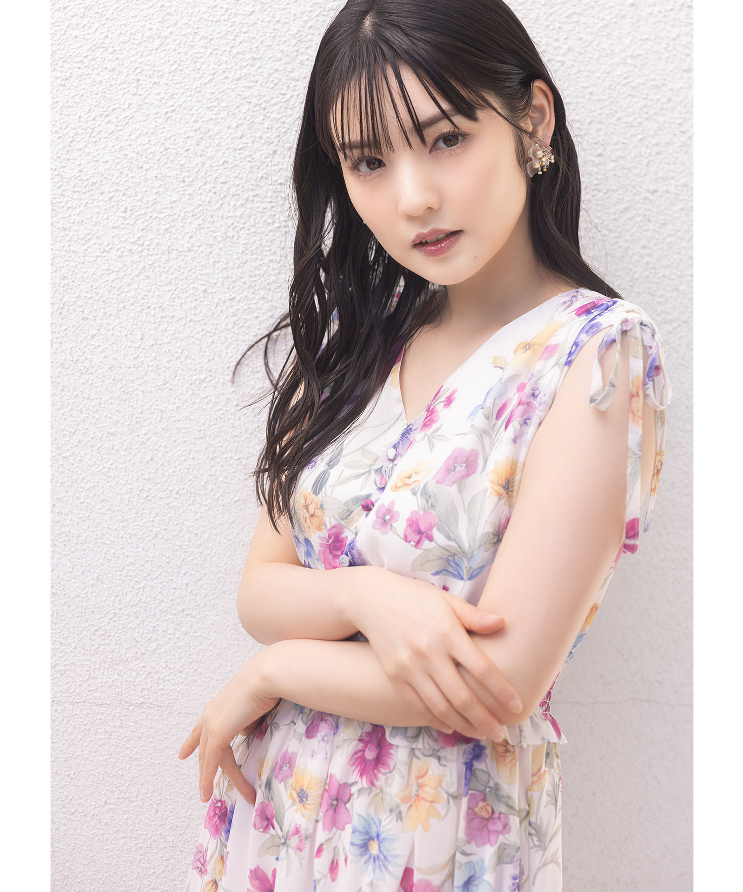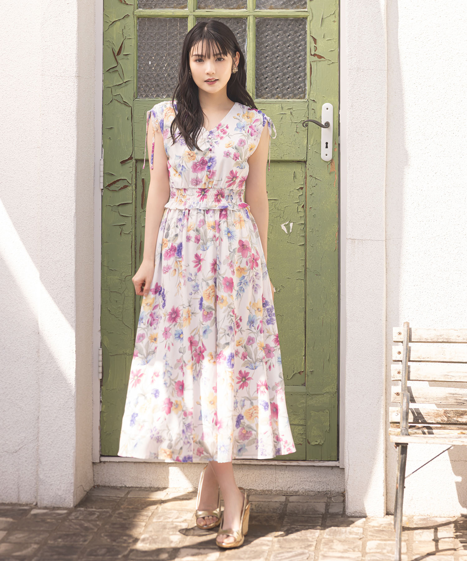 肩ドロストリボン付きフラワープリントウエストシャーリングワンピース【fiorine フィオリネ】tocco closet(トッコクローゼット) ※道重さゆみさんはピンク着用 ピンク ブルー 商品番号:186-196344