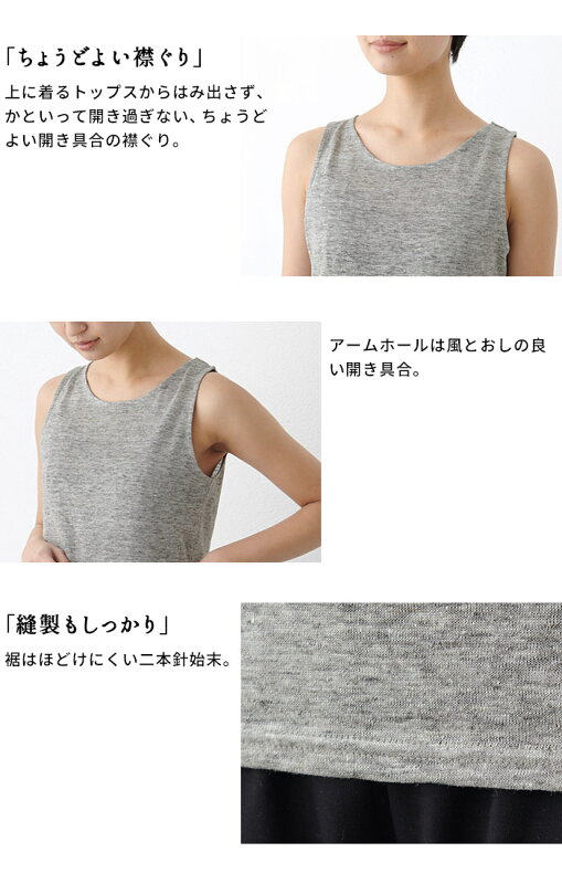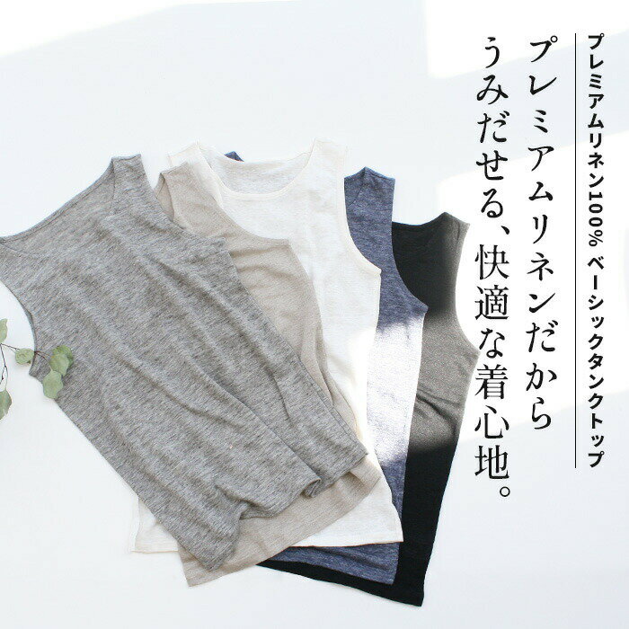 [ 累計販売枚数6000枚突破 インナー タンクトップ レディース ] プレミアムリネン100% ベーシック タンクトップ / 日本製 メール便可 40代 50代 60代 麻 インナー ノースリーブ 速乾 抗菌 涼しい 大きいサイズ ストレッチ