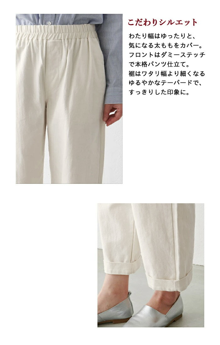 [ 累計販売数5000本突破 パンツ レディース 綿100 ウエストゴム ] コットン100% しっかり厚手 ヘリンボン セミワイドパンツ カーブパンツ / 日本製 40代 50代 60代 ワイドパンツ ヘリンボーン 春 夏 秋 冬 ゆったり デニム ストライプ