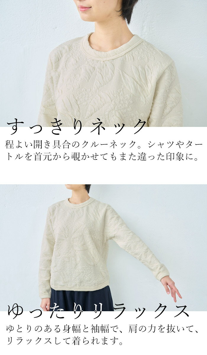 [ トレーナー レディース 無地 秋冬 ] HOMARE FUKU ストレッチ キルト トレーナー / 日本製 50代 60代 70代 女性 ミセス プルオーバー コットン キルティング 花柄 ゆったり 長袖 カジュアル キルト生地 キルト綿