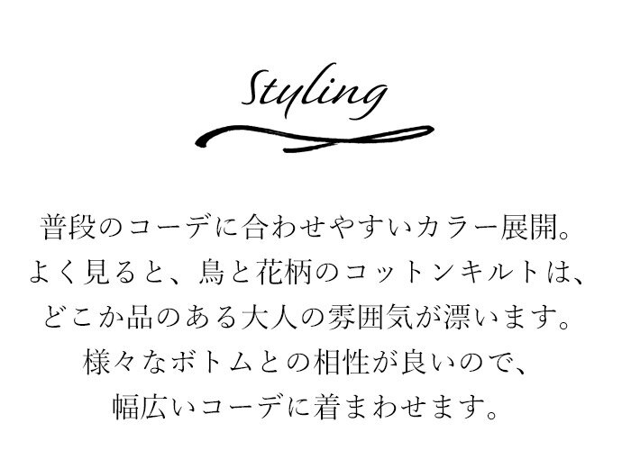 春秋に一枚で、真冬は重ね着で使う素材感です。
