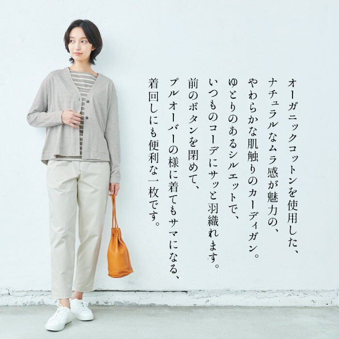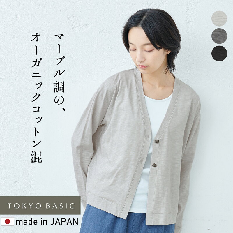 【スーパーSALE 10%OFF】[ カーデ レディース 長袖 薄手 ] オーガニックコットン マーブル天竺 ヴィンテージ カーディガン / 日本製 40代 50代 60代 30代 コットン100% 綿100% Vネック ゆったり コットン 綿 無地 秋 冬 春 日除け 軽い