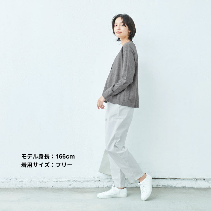 Vネック、着丈、綿で肌触りもよくて、身幅にゆとりがあるけど、袖がスッキリしてるところが気に入ってます。
