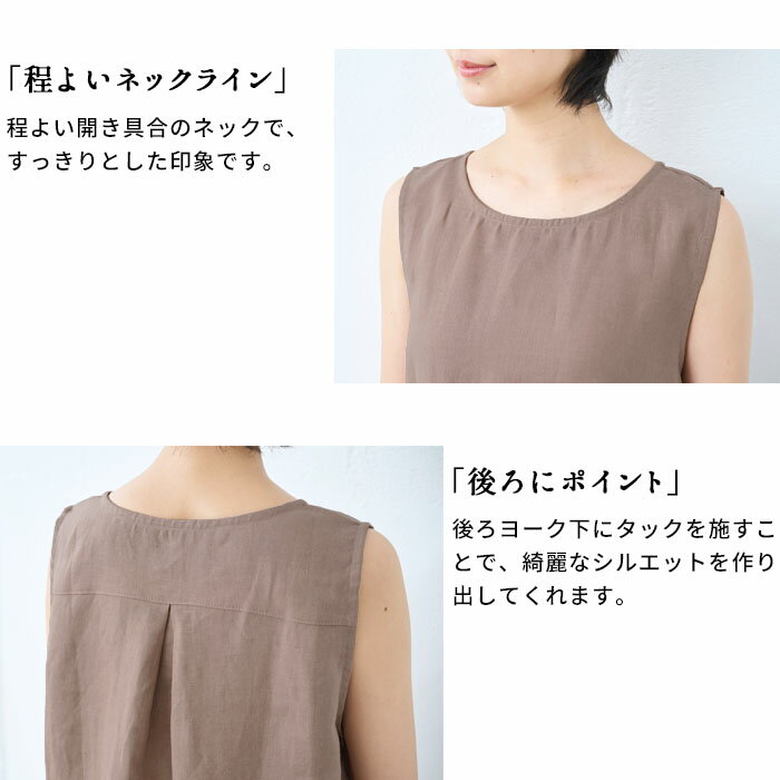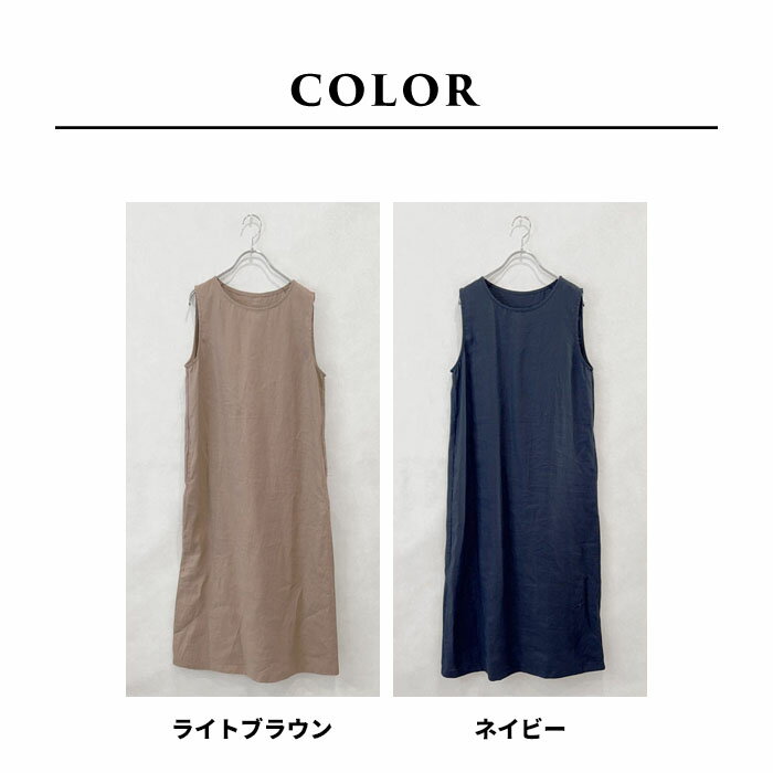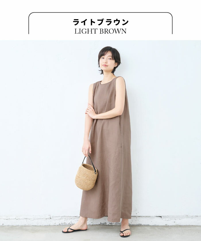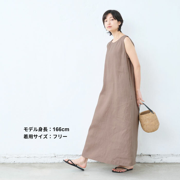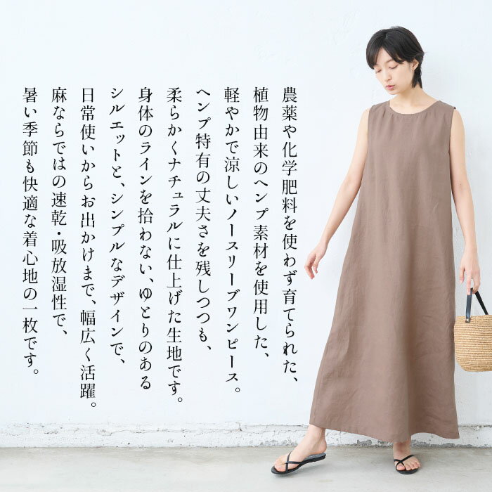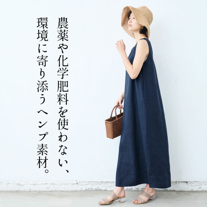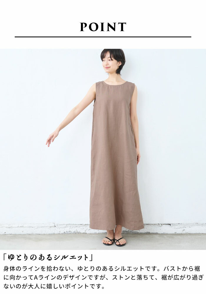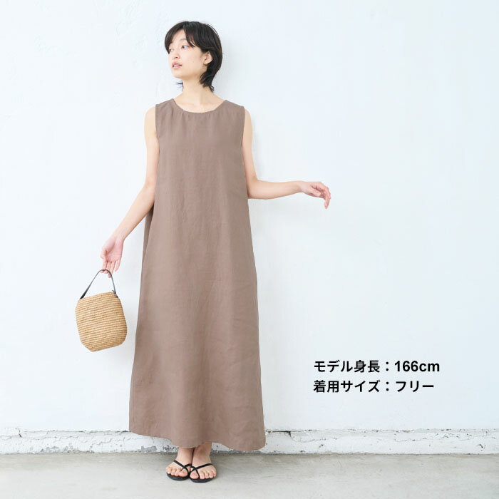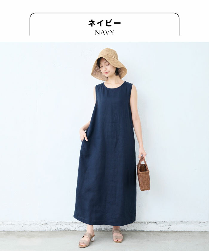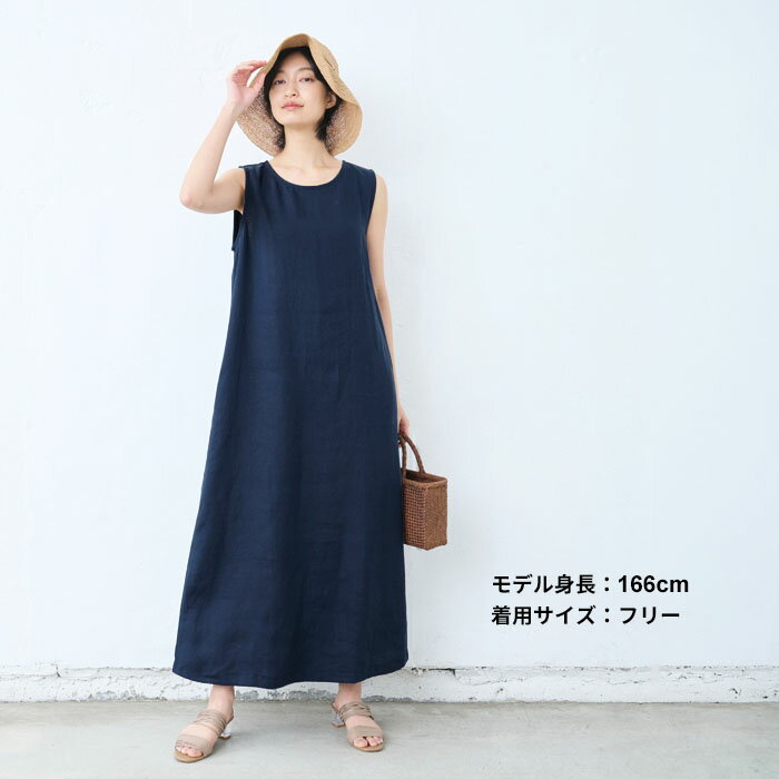 【新作】[ レディース ワンピース 麻 ノースリーブ 夏 ] 40番手 麻100% ( ヘンプ ) ノースリーブワンピース / 日本製 40代 50代 60代 麻100 涼しい ゆったり 体型カバー Aライン 軽い 無地 ナチュラル シンプル カジュアル 薄手 速乾 春夏 真夏