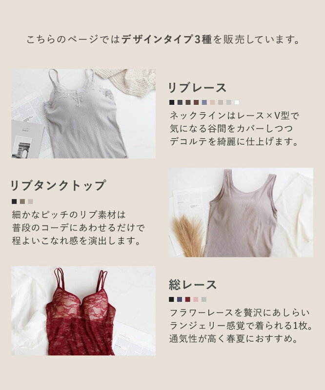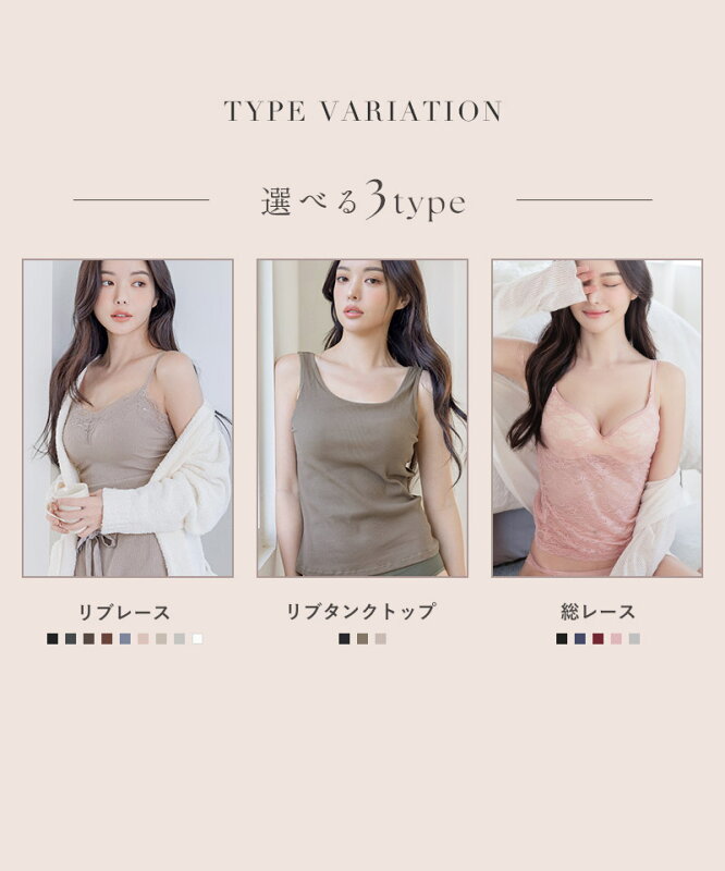 リブキャミのスモークピンクとブラック、タンクトップのカーキを購入しました。