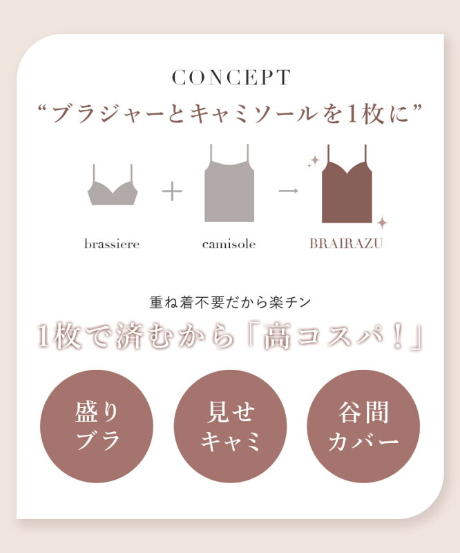 通常のブラ付きキャミソールよりもたしかに安定しています。