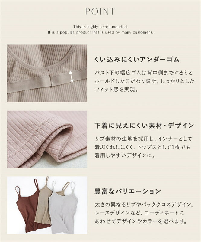 出かける時は基本ノンワイヤーを付けていますが、仕事中はしゃがんだり荷物を運んだりよく動くので、ホールド感のあるカップ付きキャミを探していました。