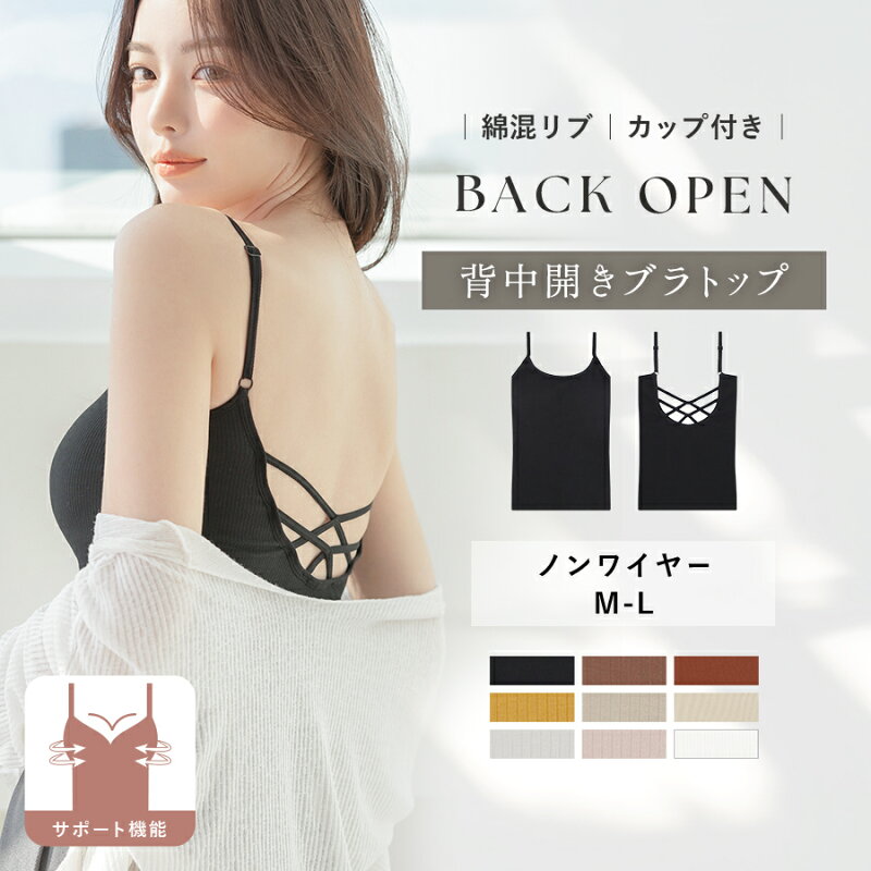 【最大28%OFFクーポン】 カップ付きバックオープンキャミバックオープンブラトップ キャミソール リブ カップ付キャミソール 背中あき インナー 背中見せ ブラトップ 背中 開き ブラキャミソール バッククロス ブラキャミ