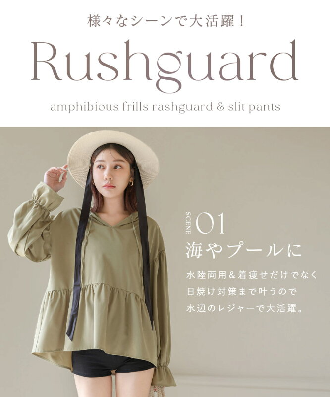 【最大28%OFFクーポン】 在庫わずか!水陸両用フリルラッシュガード上下セット 日焼け防止 水着 ラッシュガード レディース フード付き 長袖 トップス パンツ 速乾 ママ 水着 体型カバー かわいい 二の腕 お尻 カバー 20代 30代 40代【tu-hacci】