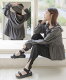 上下ともにサイズはちょうどいいですが、ズボンに関しては、裸足だと少し床につくため、高めの履物がちょうどいいかなと思います。