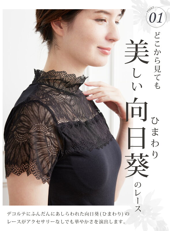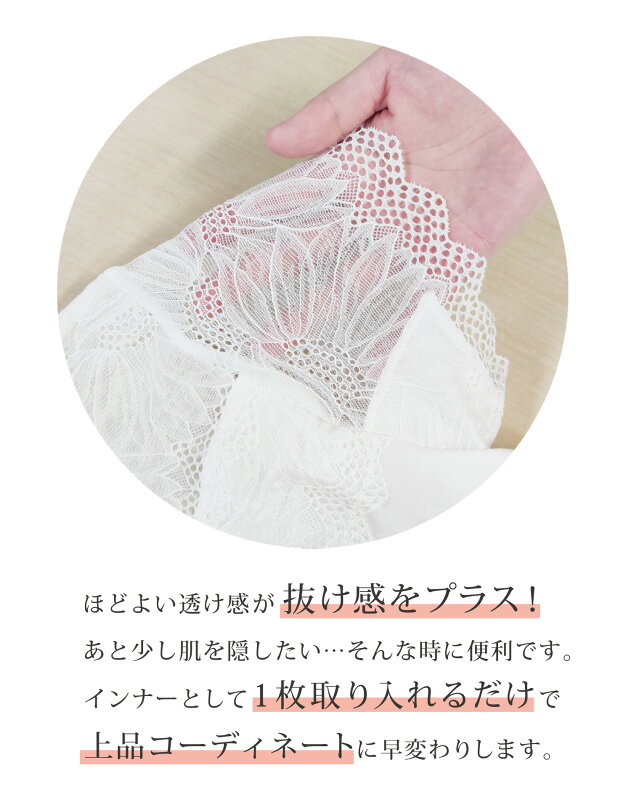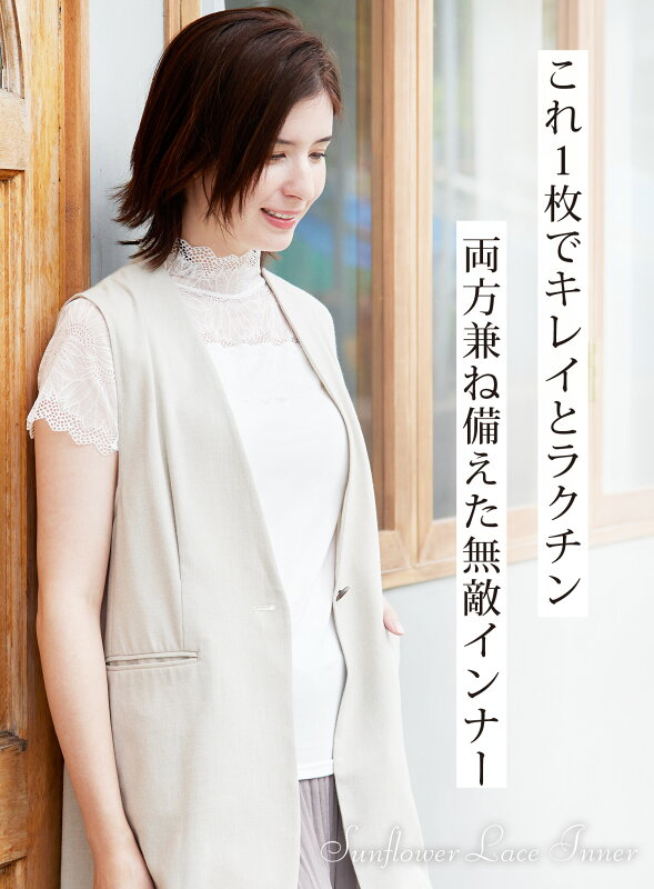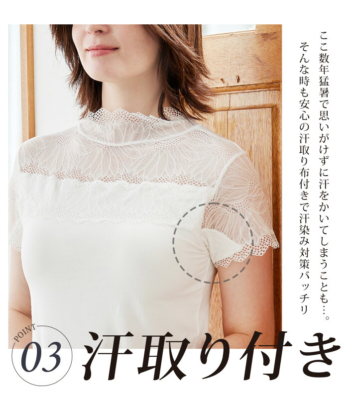 [スーパーSALE 2点で20%OFFクーポン対象] [新発売] カップ付き レースインナー 汗取り布付き フィットブライン インナー ハイネック フレンチ袖タイプ 脇汗 / 綿混 成形カップ 肌を隠す 見せインナー ブラトップ ノンワイヤー 2p10o 4h20