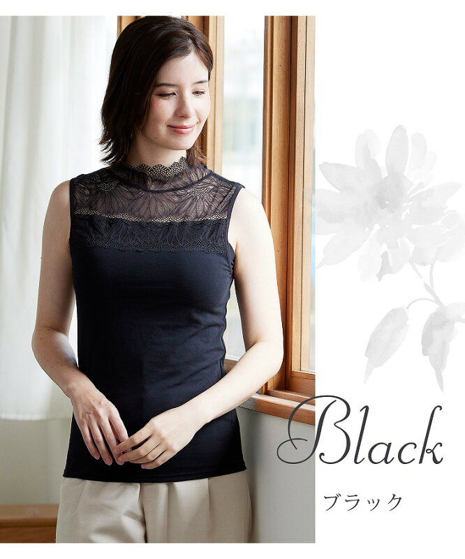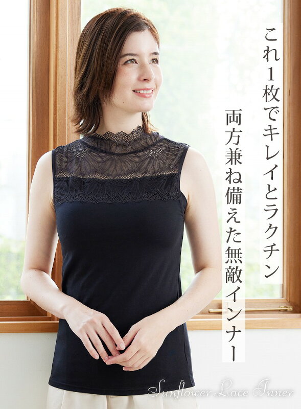 [新発売] カップ付き レースインナー 汗取り布付き フィットブライン インナー ハイネック ノースリーブタイプ 脇汗 / 綿混 成形カップ 肌を隠す 見せインナー ブラトップ ノンワイヤー 2p10o 4h20