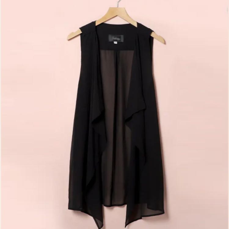 シフォンベスト シフォンカーディガン レディース サマーカーディガン ノースリーブ カーディガン 透け感 ドレープ 薄手 切り替え 袖なし 着やせ 薄手 春夏 体型カバー 黒 ブラック 重ね着 レイヤード 大人 女性 上品 大きいサイズ ギフト プレゼント 送料無料