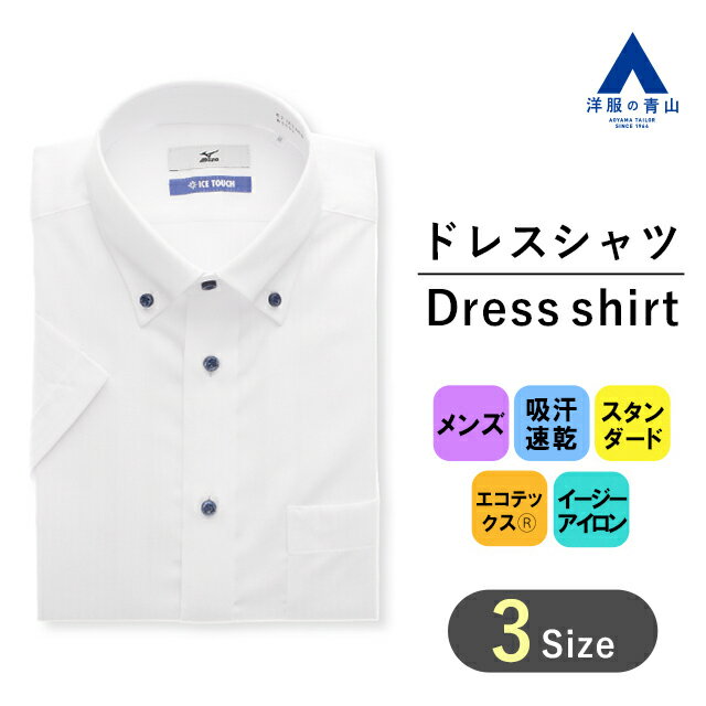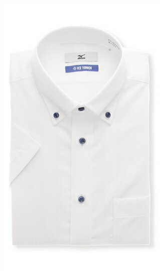 【洋服の青山】ミズノ ワイシャツ 半袖 メンズ レギュラー 盛夏用 夏 ホワイト 白 ストライプ ボタンダウン 形態安定 すぐ乾く 吸汗速乾 ストレッチ 消臭 ビジネスシャツ カッターシャツ Yシャツ クールビズ ビジネス オフィス スタンダード おしゃれ MIZUNO ICE TOUCH 103