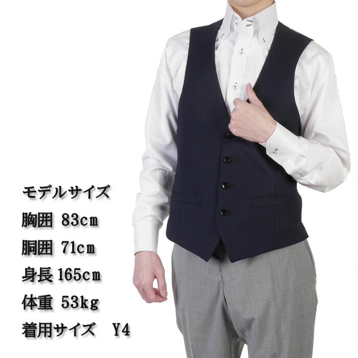 ベストスリム ジレ ビジネス カジュアル メンズ良質ウール100% 濃紺無地 3500 rv5099-rss-