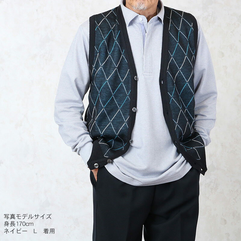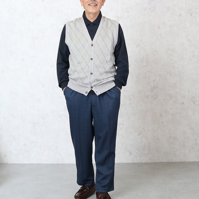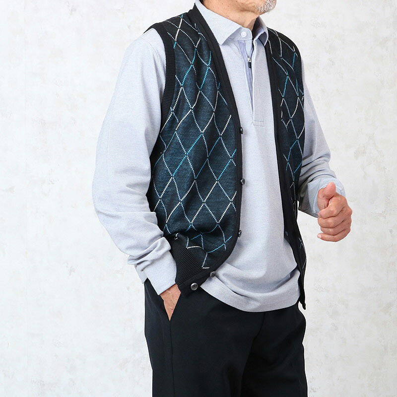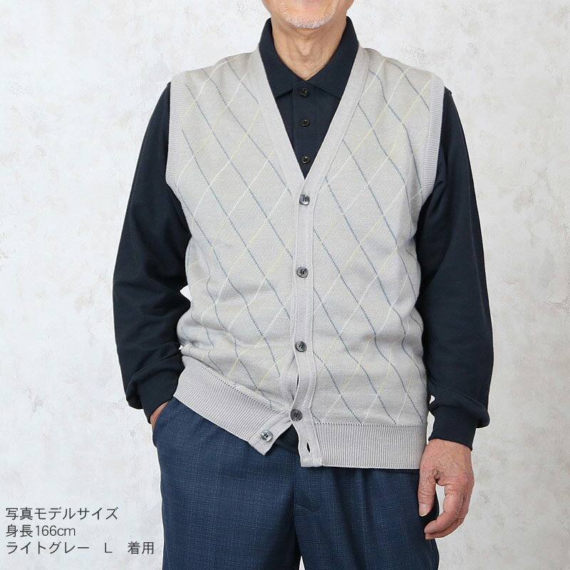日本製 麻混 前開き ダイヤ柄 ニット ベスト シニアファッション メンズ 60代 60代 70代 80代 90代 高齢者 服 春夏 高齢者 服 おじいちゃん 誕生日 紳士 祖父 男性 老人 ギフト 敬老の日 プレゼント 孫 施設