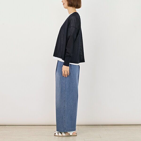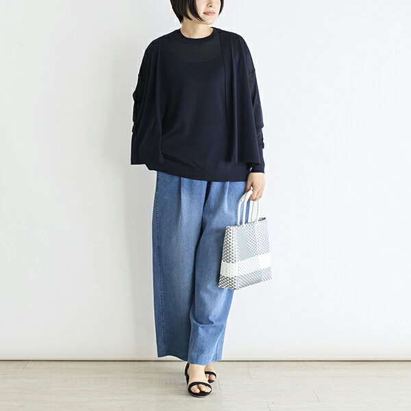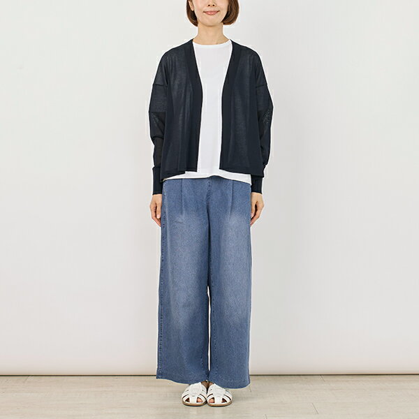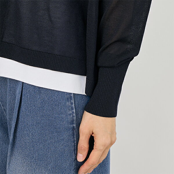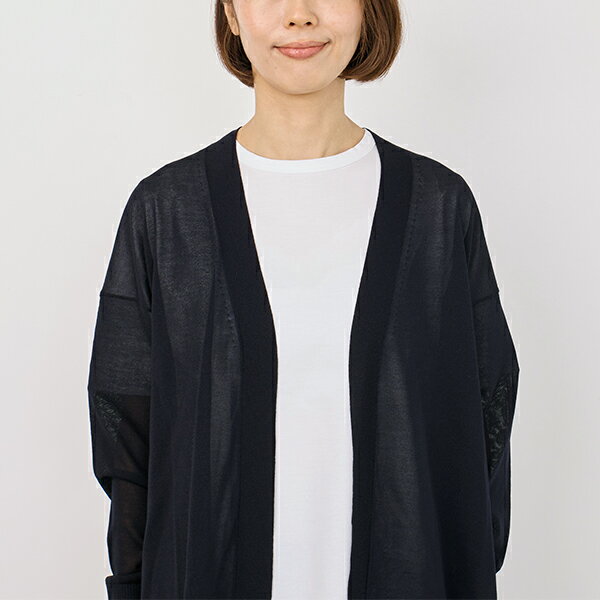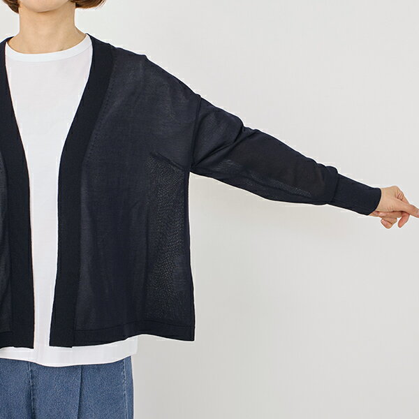 【栗原はるみ/ウエア/ギフト包装可】 シアーニットカーディガン / 栗原 はるみ カーディガン ニットカーディガン フレアーカーディガン 長袖 羽織り レディース ニット ボタンなし UV対策 冷房対策 軽い 軽量 カーキー ネイビー