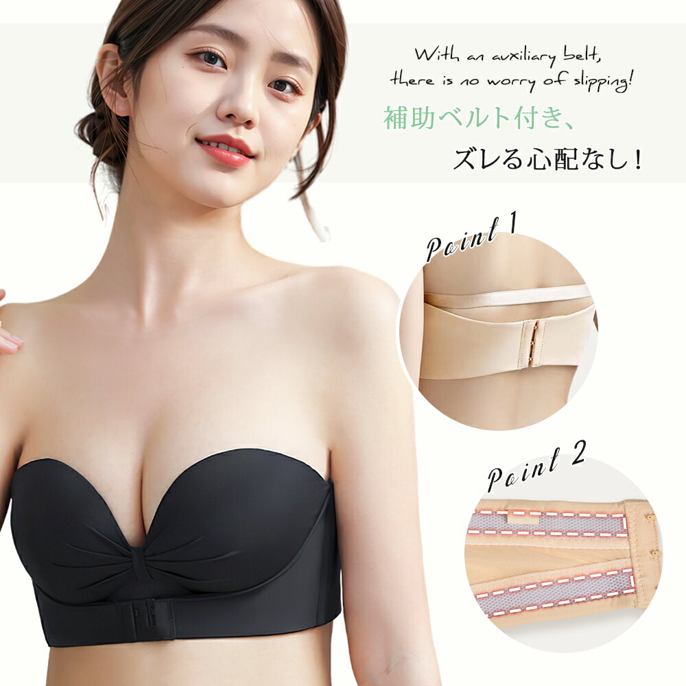 【クーポンで⇒1,280円】 ブラジャー 肩紐なし ストラップレスブラ 落ちない ブラ ずれない 谷間 バストアップ 盛れる 脇高 ノンワイヤー 高弾性 ナイトブラ 育乳ブラ チューブトップ 柔らかい シームレスブラ オフショル インナー ブラジャー 寄せブラ