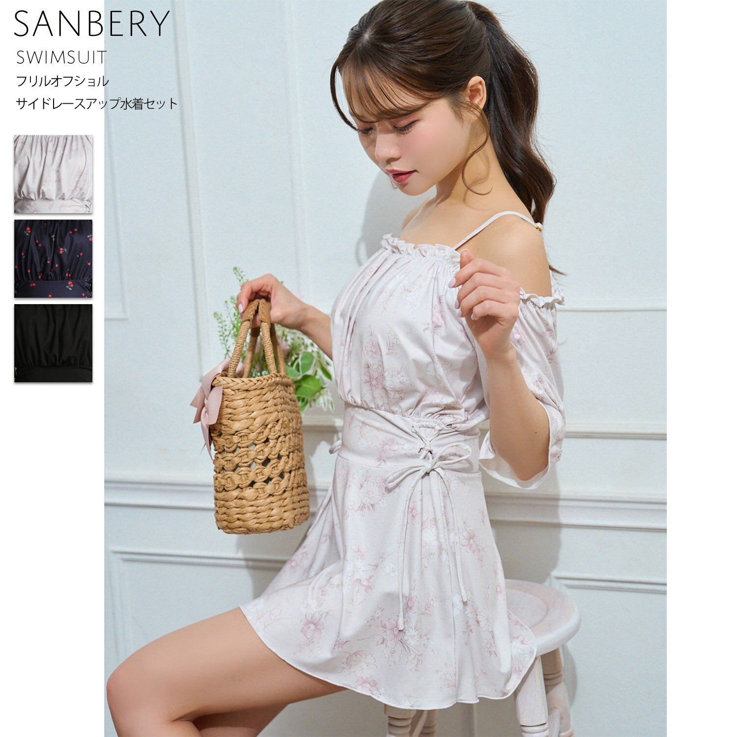 【S・Mサイズ展開】フリルオフショルサイドレースアップ水着セット 【sanbery サンベリー】※オンライン&新宿ルミネエスト限定 tocco closet(トッコクローゼット) ※ichaaakoさんはグレイッシュピンク着用 ネイビーブラック 商品番号:186-183388