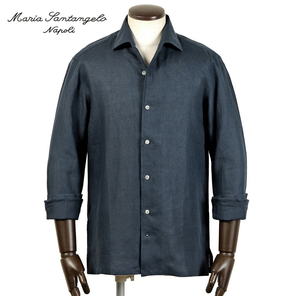 【ポイント10倍】 マリアサンタンジェロ Maria Santangelo / 当店別注Vittoriaリネンポプリンイタリアンカラーシャツ「MARCELLO」(ネイビー)/ 春夏 メンズ イタリア ナポリ リネンシャツ 麻シャツ ヴィットーリア