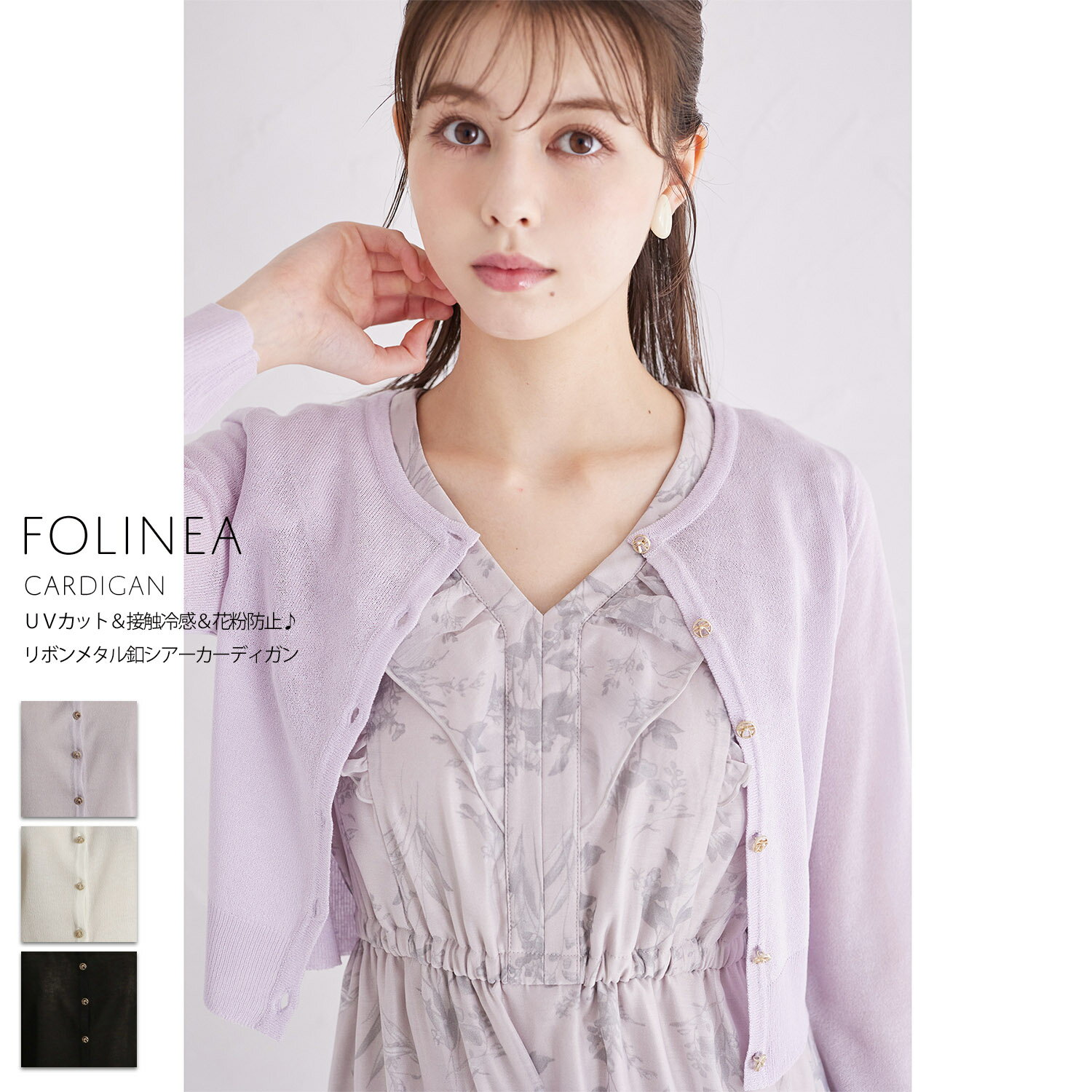 UVカット&接触冷感&花粉防止♪リボンメタル釦シアーカーディガン【folinea フォリネア】tocco closet(トッコクローゼット) ラベンダー オフホワイト ブラック 商品番号:186-193037