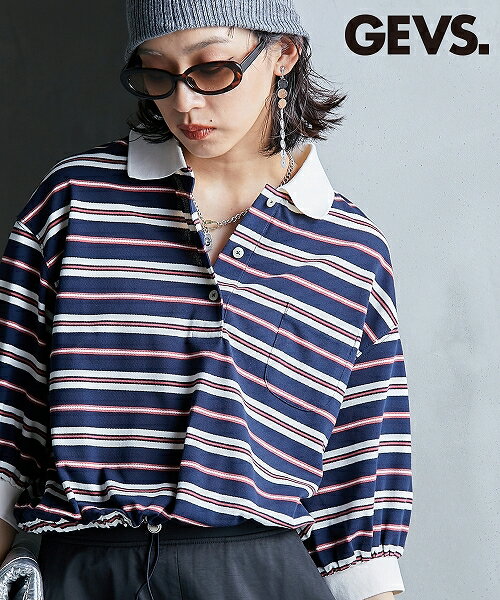 【アウトレット】<大きいサイズ>マルチボーダーショート丈ポロシャツ GEVS. nissen (h)