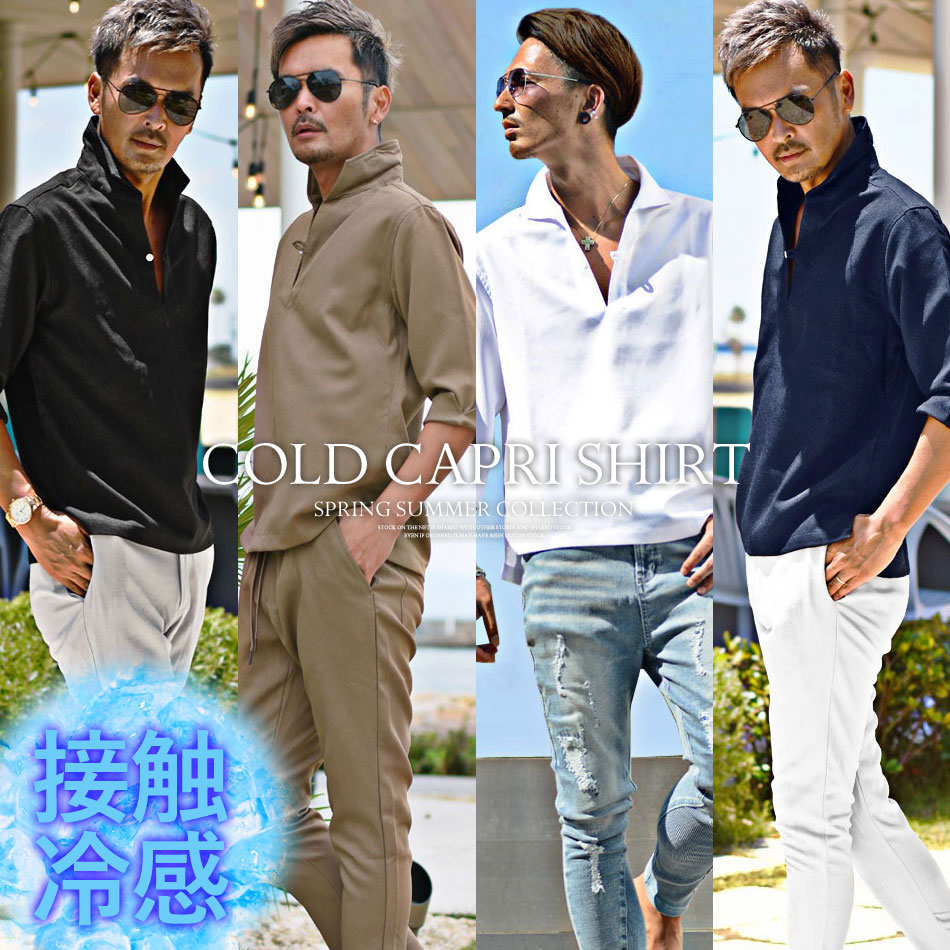 接触冷感 パナマシャツ メンズ シャツ 七分袖 白シャツ カプリシャツ カジュアルシャツ 夏服 夏物 メンズファッション リゾート サーフ系 ちょいワル イケオジ